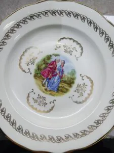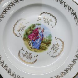 10x Talerze francuskie głębokie – scenki dworskie (sygnatura „Veritable Porcelaine”).
