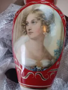 Przedmiotem sprzedaży jest kolekcja polskiej porcelany (głównie wytwórnie Wawel i Wałbrzych) z kultowym motywem Natalii Potockiej. Malatura na jednym dzbanie sygnowana napisem „wykonana ręcznie przez artystkę B. Cierlecką.