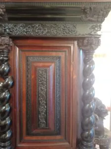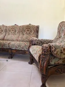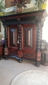 >kanapa 210×90 cm. Szafa 225x215x85 cm. Stolik 65.5×100 cm. Antyczna szafa i kanapa z fotelami oraz stolik. Zabytkowy mebel, który zazwyczaj ma co najmniej 100 lat i wyróżnia się solidnym wykonaniem z wysokiej jakości drewna, takiego jak dąb czy orzech. Ceny tych mebli są bardzo zróżnicowane i zależą od wielu