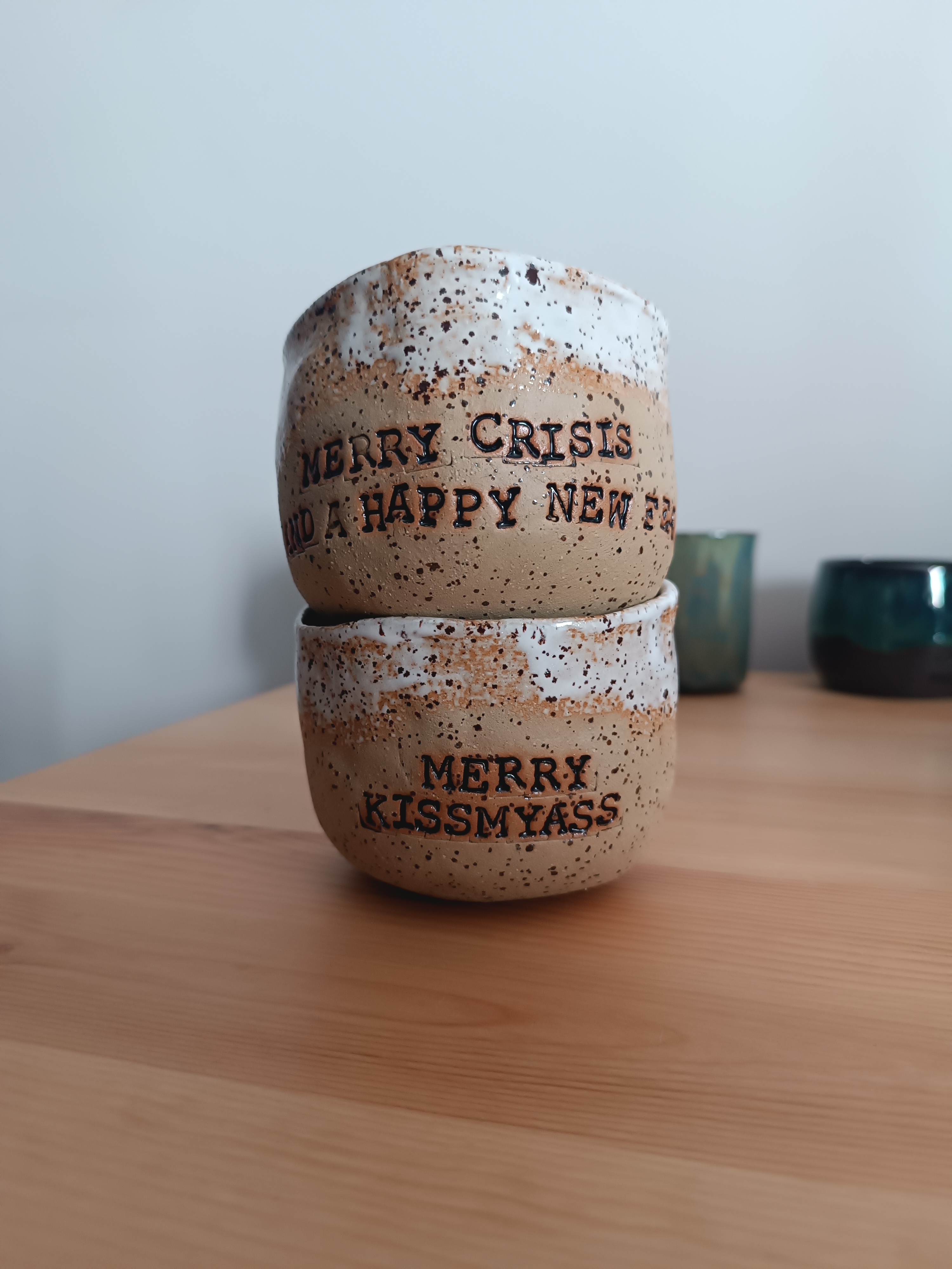 Różnego rodzaju ceramiczne rękodzieło w postaci kubków i czarek