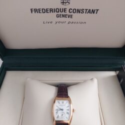 Zegarek w stanie bardzo dobrym, posiada bransoletkę skórzaną z aligatora, jak i wymienną biżuteryjną w kolorze srebrnym. Tarcza z białej masy perłowej wykładana 12 brylantami Top Wesselton VS-SI, o łącznej...