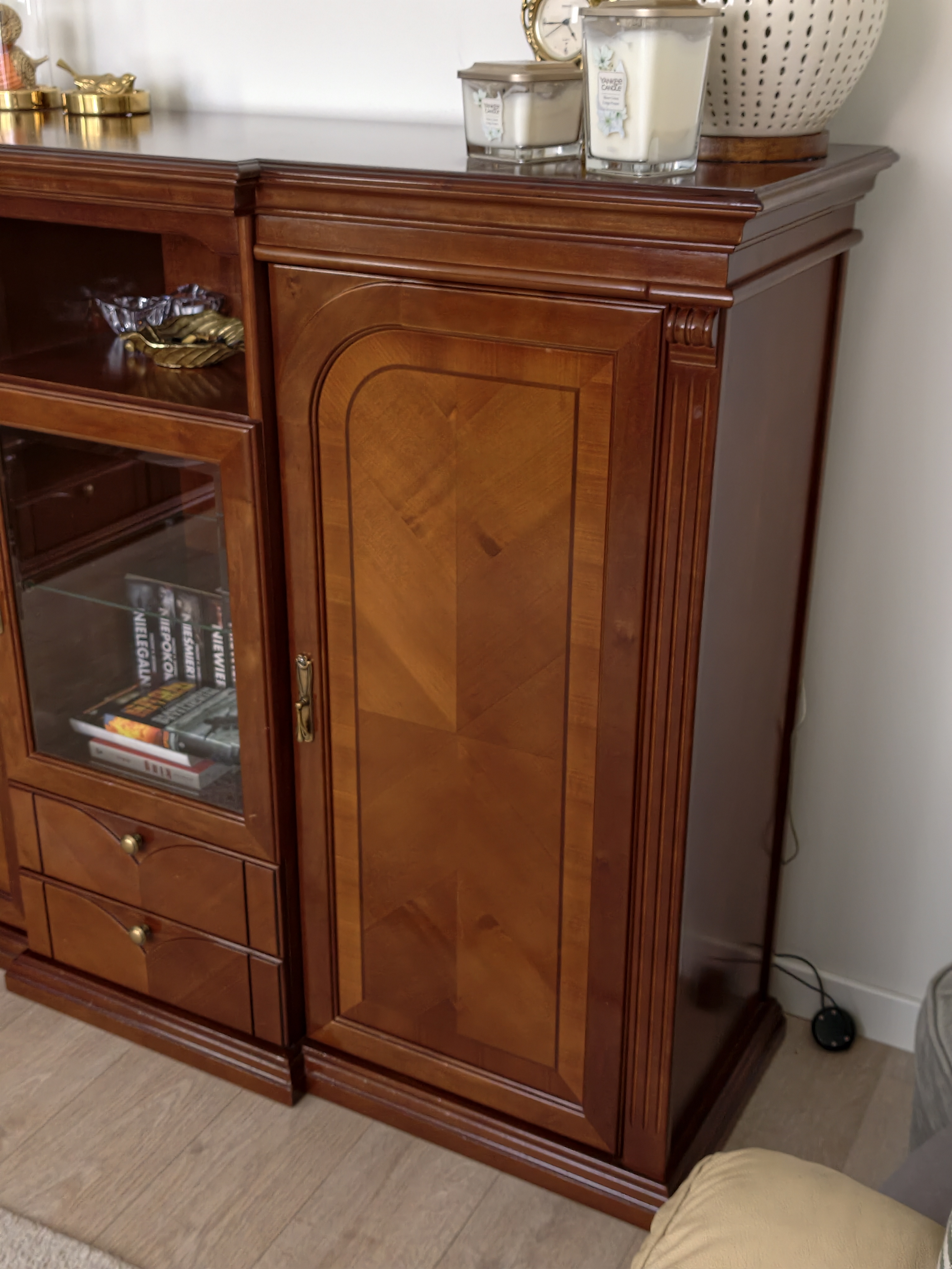 szafa biblioteczna 3 drzwiowa, szafa biblioteczna 2 drzwiowa, kanapa około 2 metry, stolik z jedną nogą w nodze schowek, toaletka z płytkami marmurowymi, szafa odzieżowa 3 drzwiowa. wszystko jest gotowe...
