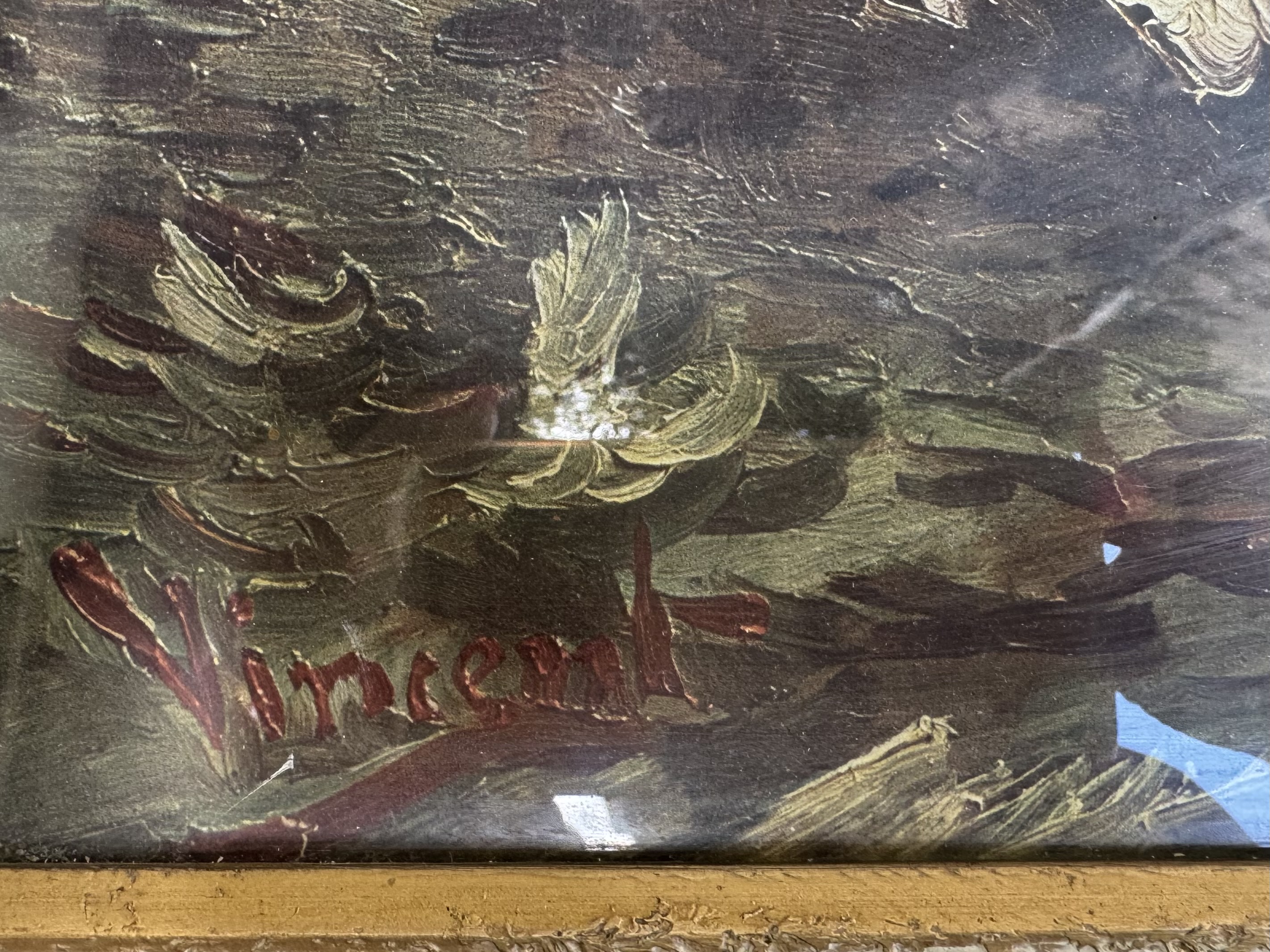 Obraz - druk? - widoczny na zdjęciach ,nosi ślady użytkowania i posiada przedarcie widoczne na...