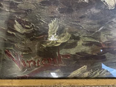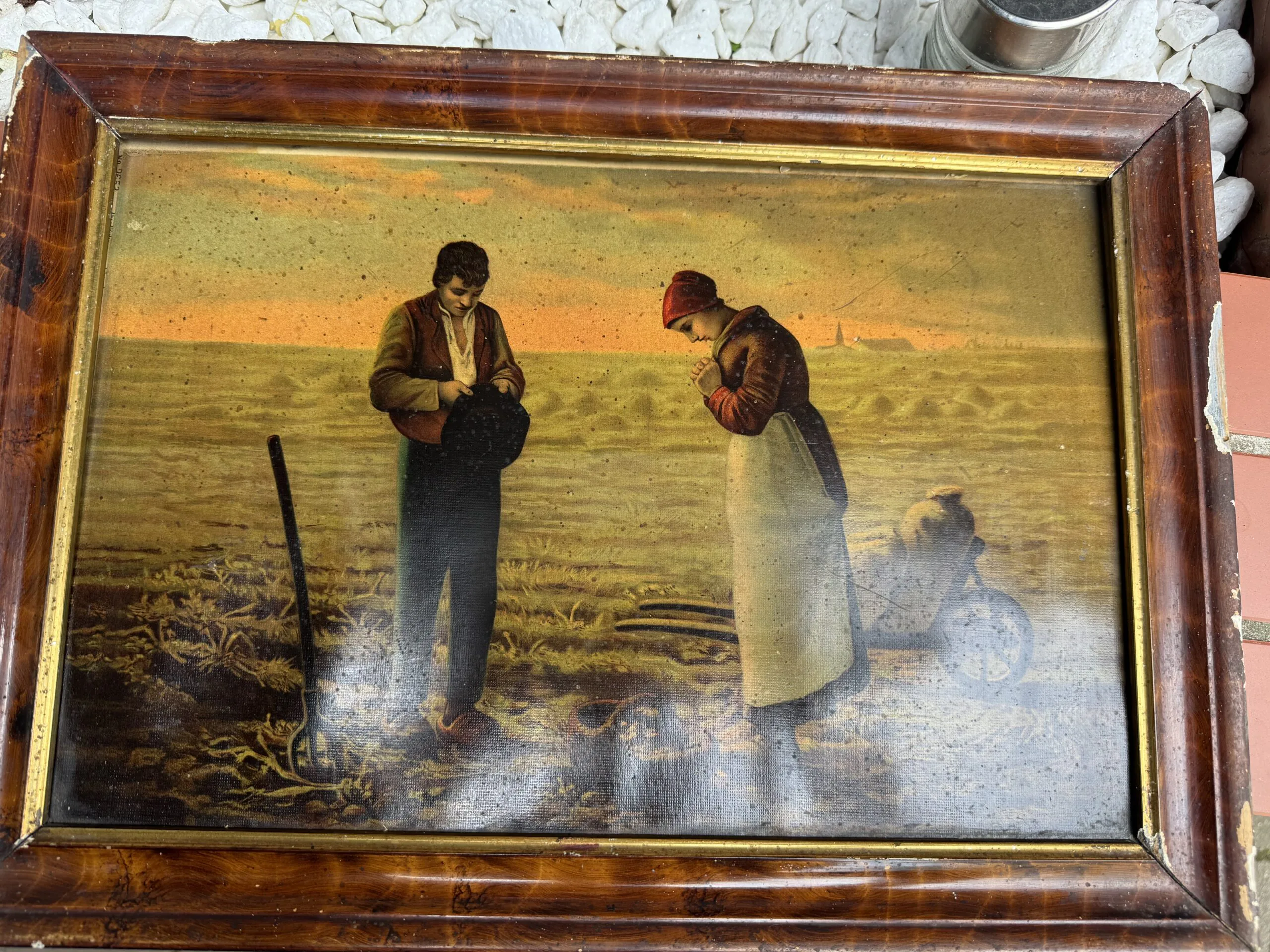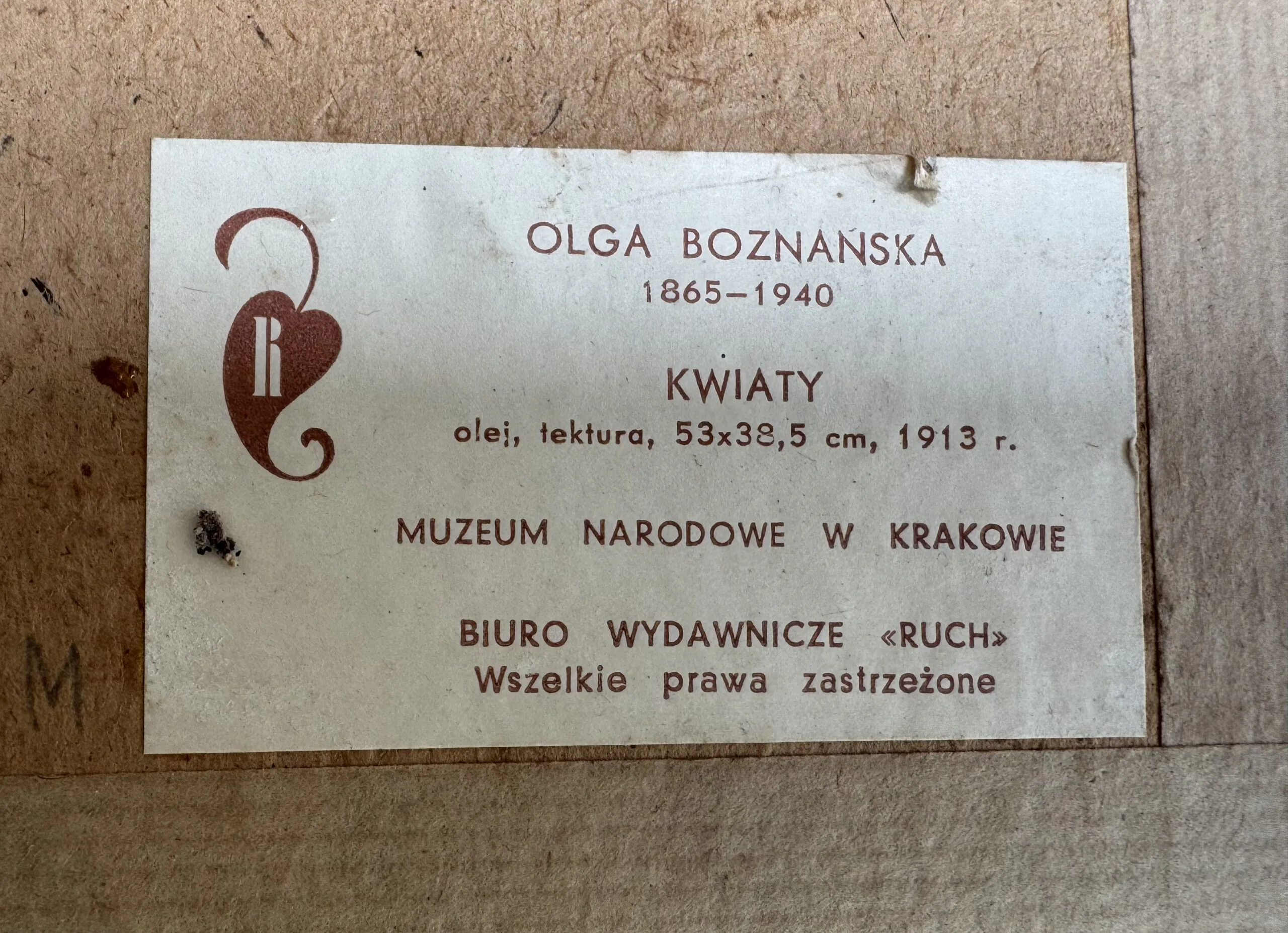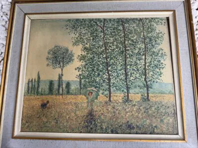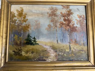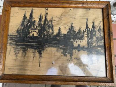 Obraz jest w rodzinie od 1943 roku, powstał jeszcze przedtem. Od tego czasy był nie wyjmowany z ramy do zeszłego roku, brak uszkodzeń. Rama raczej do wymiany. Obraz wisiał w...