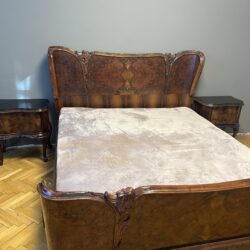Kolekcja mebli: szafa trzydrzwiowa z lustrem , łóżko podwójne, 2x szafki nocne przy łóżku , kinkiety i lusterka do sypialni, Witryna , stół i 6 krzeseł, komoda, duży kredens i duże lustro na kredensie, Sofa, 2x fotel i owalny stolik kawowy, Piec typu koza, 3 x Żyrandol, stolik i krzesło, łóżko zdobione podwójne, 2 x szafka nocna