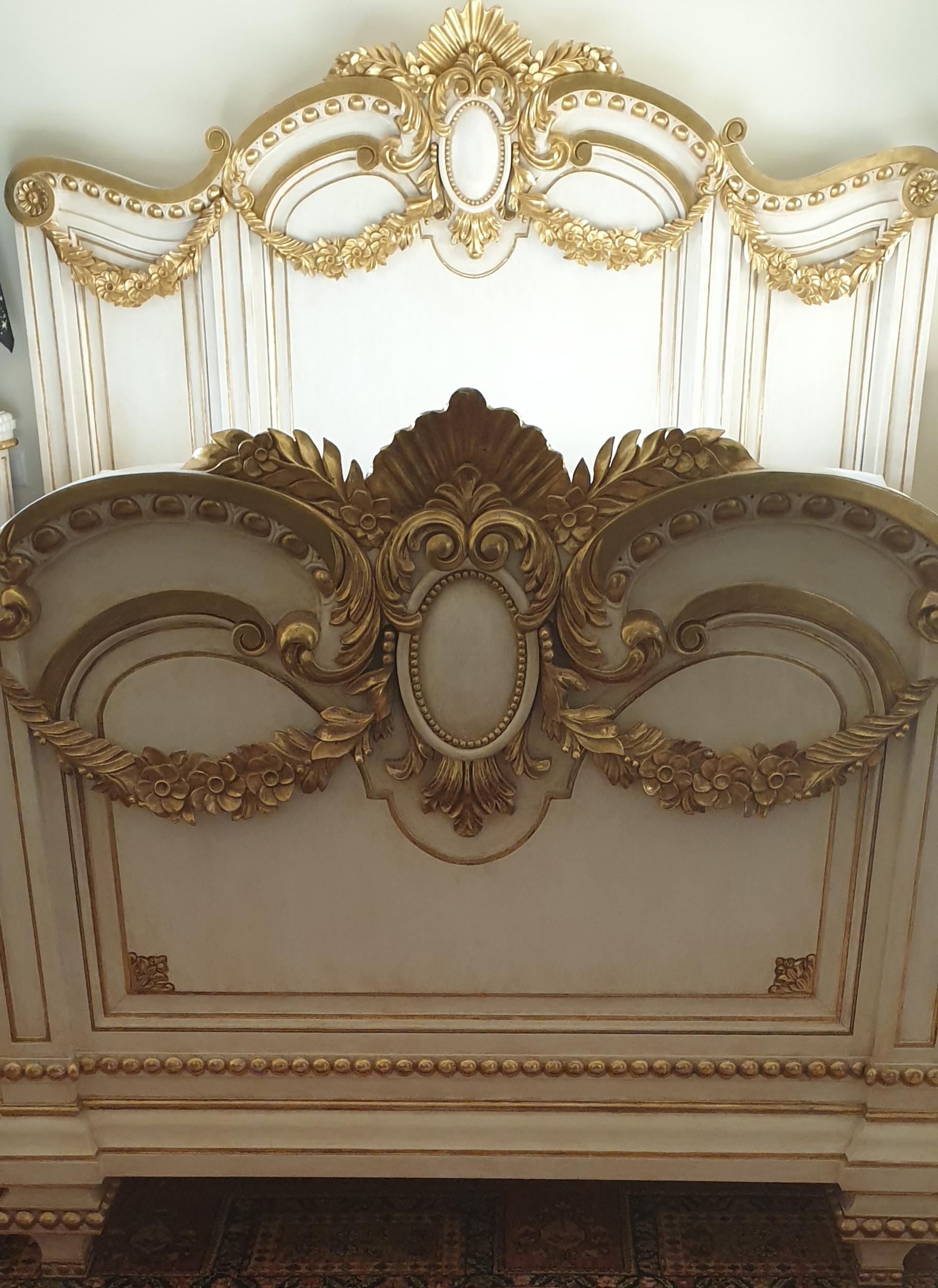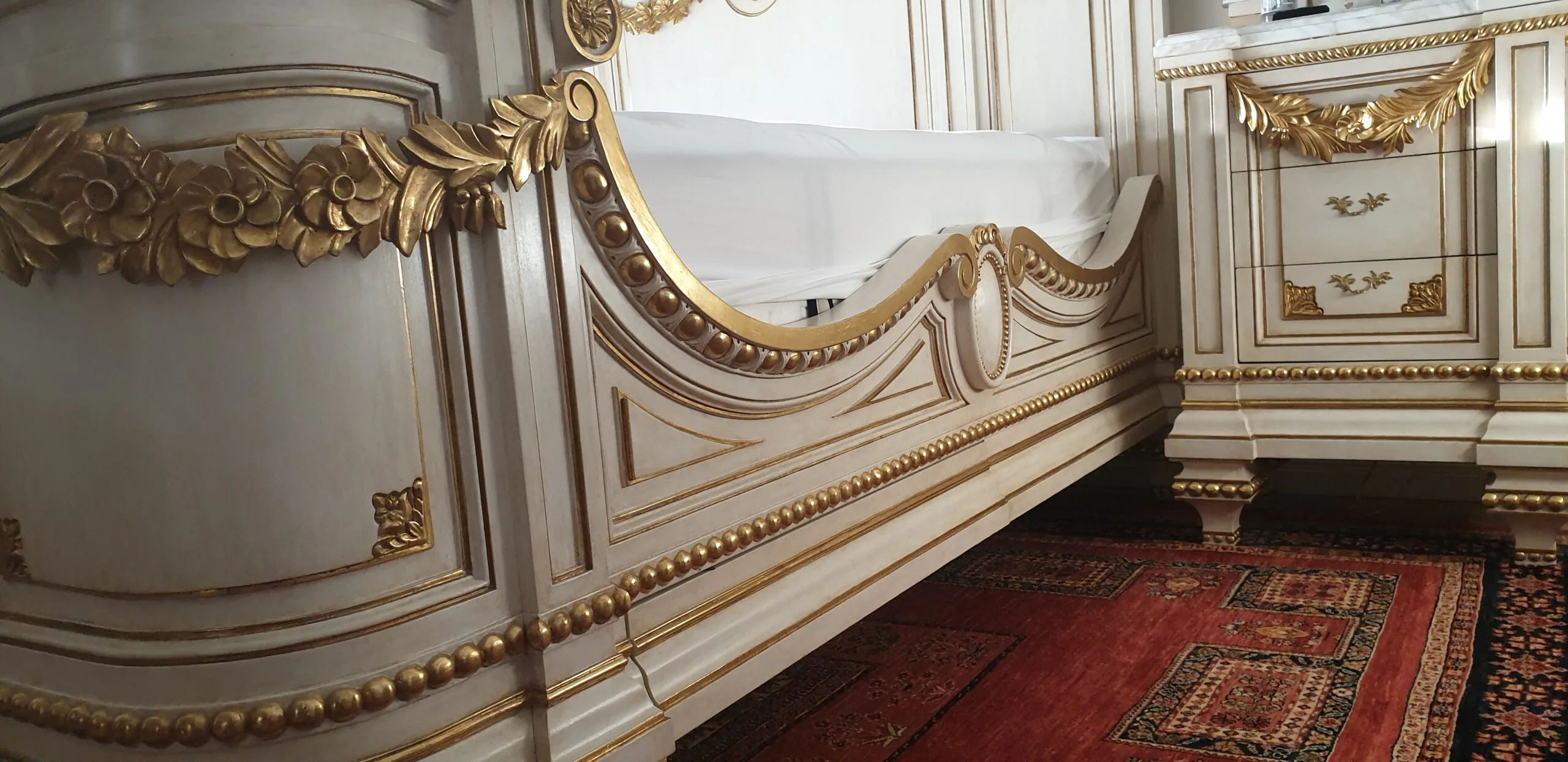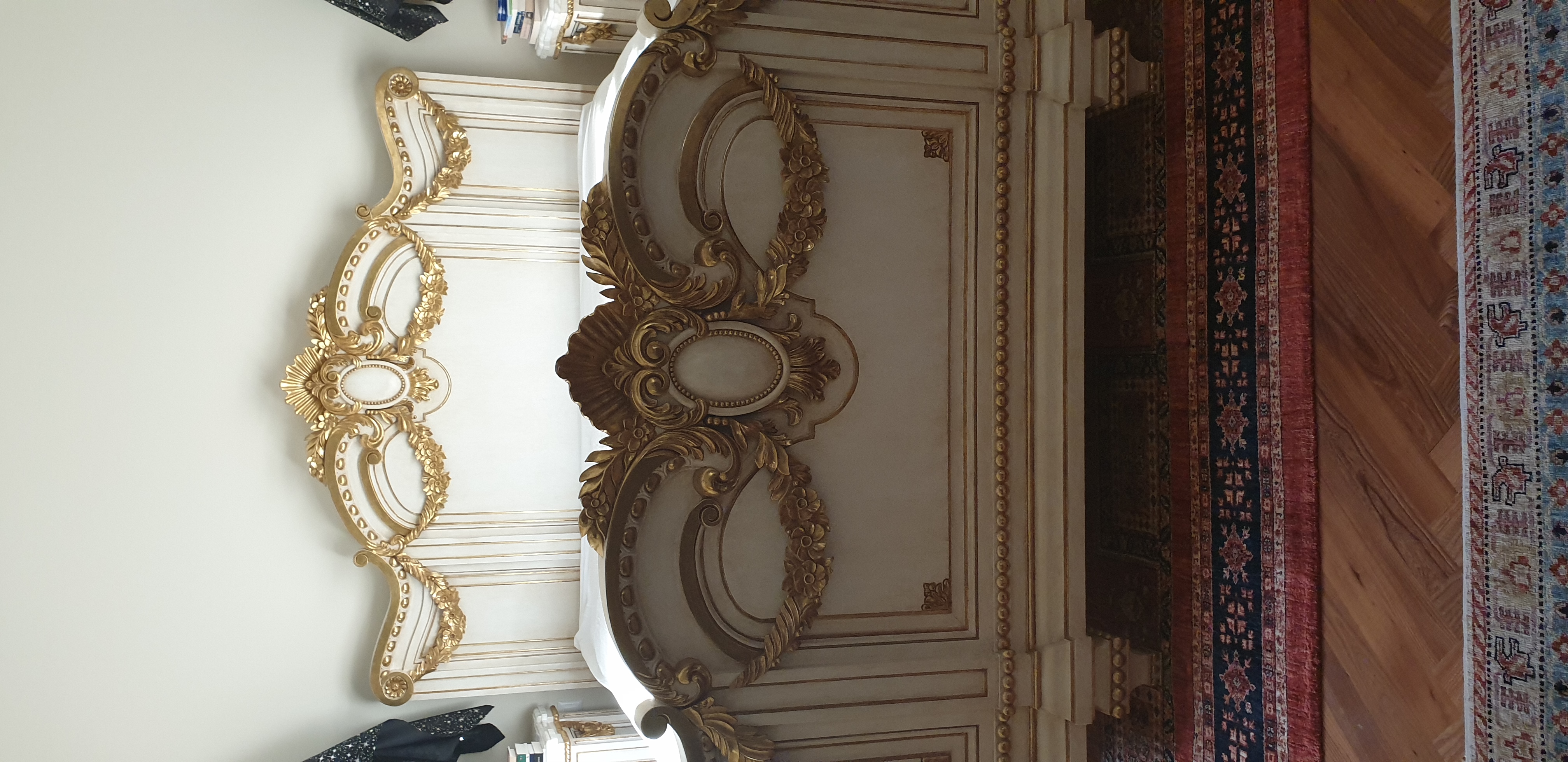 * Lóżko malżenskie ( king size) z rzeźbiona konstrukcją i złotymi detalami