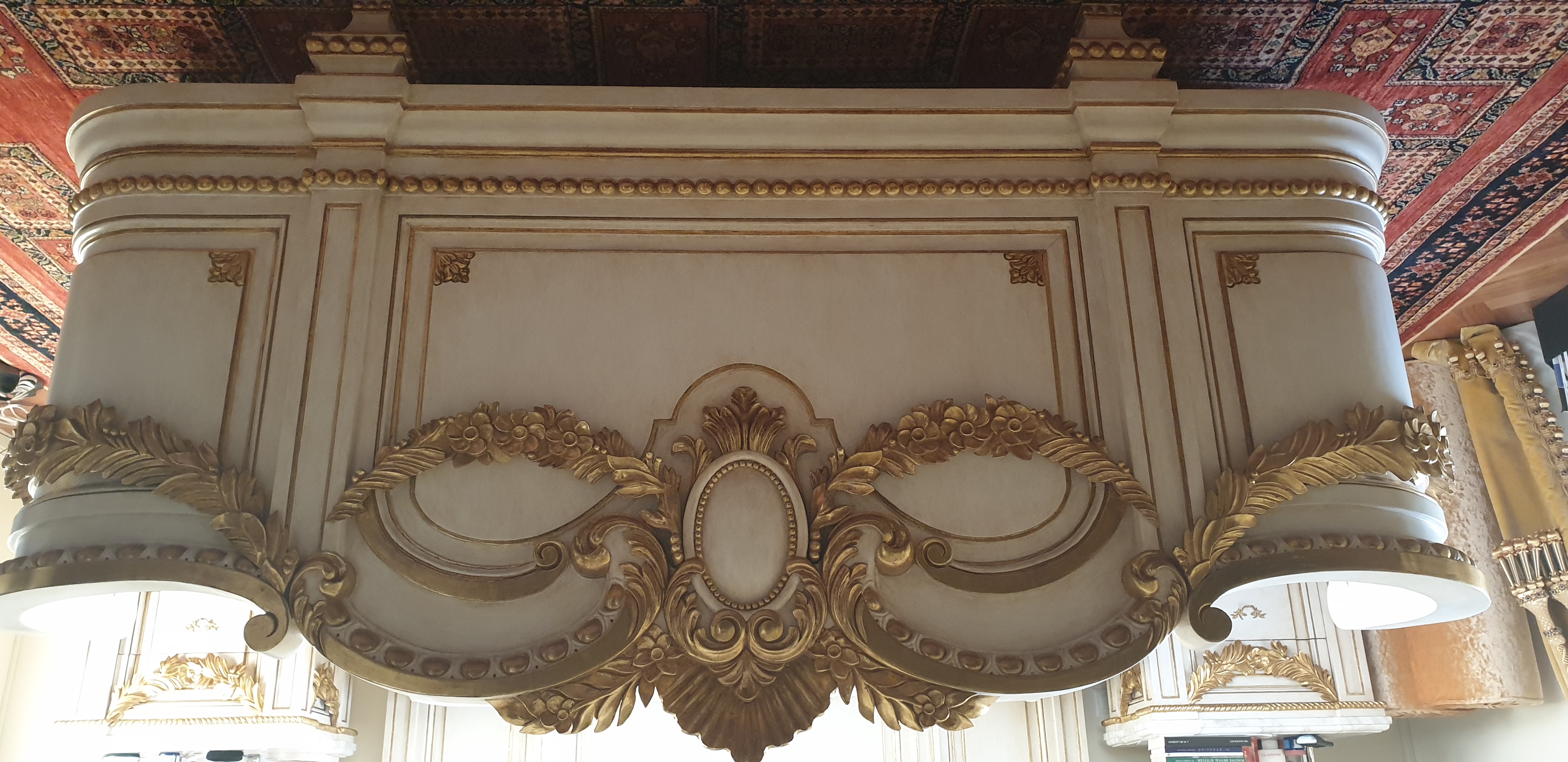 Całość wykonczona w eleganckiej, złotej kolorystyce, inspirowanej stylem Ludvika XV/ barokiem, idealna do wnętrz o wysokim standardzie.