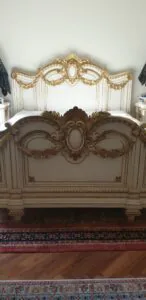 Elegencki i wyjatkowy komplet sypialny w stylu barokowym, wykonany w 2008 roku przez slawnego architekta Henry Allardyce.Meble wyrozniaja sie wysoką jakoscią rzemiosla oraz bogatymi, recznie wykonanymi zdobieniami. sypialania Henry Allardyce. W skald zestawu wchodzą: