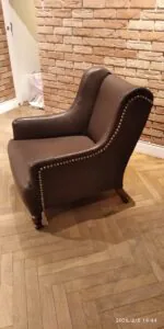 wymiary fotela z oparciem wys. 74 cm. głębokość siedziska 70 cm /sprężynowe/ wys. podłokietników od podłogi 45 cm.