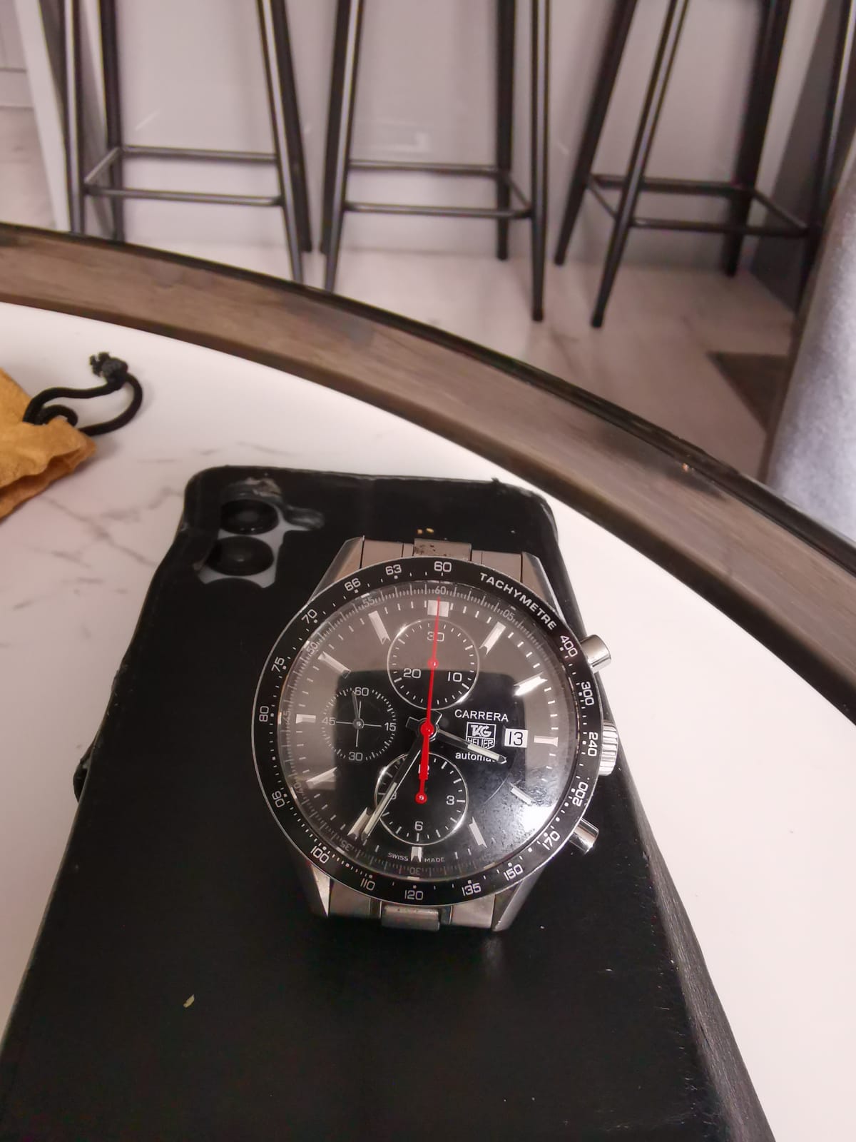 Zegarek meski TAG Heuer. TAG Heuer Carrera Calibre 16 (CV2014-2) to klasyczny, sportowy chronograf inspirowany światem wyścigów samochodowych, produkowany około 2010 roku. Jest to jedna z najbardziej rozpoznawalnych referencji w nowoczesnej historii linii