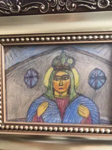 Technika: kredka. NIKIFOR. Nikifor Krynicki ( Никифор Крыницькый), właściwie Epifaniusz Drowniak, łem. Епифаний Дровняк (ur. 21 maja 1895 w Krynicy, zm. 10 października 1968 w Foluszu) – łemkowski malarz, przedstawiciel sztuki naiwnej. Nikifor żył samotnie, w nędzy, przez większość życia będąc uważanym za niepełnosprawnego intelektualnie. Mówił bełkotliwie i niewyraźnie. Był pochłonięty pasją malarską. Pod koniec życia został doceniony i uznany na świecie za wybitnego malarza. Twórczość Nikifora odkryta została w 1930 przez ukraińskiego malarza Romana Turyna, który zapoznał z nią polskich i ukraińskich malarzy kapistów, przebywających w Paryżu. Obrazy Nikifora wzbudziły ich zachwyt, zwracali przede wszystkim uwagę na jego operowanie kolorem. Entuzjastyczne opinie środowiska artystycznego nie zmieniły jednak nieprzychylnego stosunku do jego twórczości – nadal nie znajdował nabywców na swoje prace i zrozumienia dla swej sztuki.