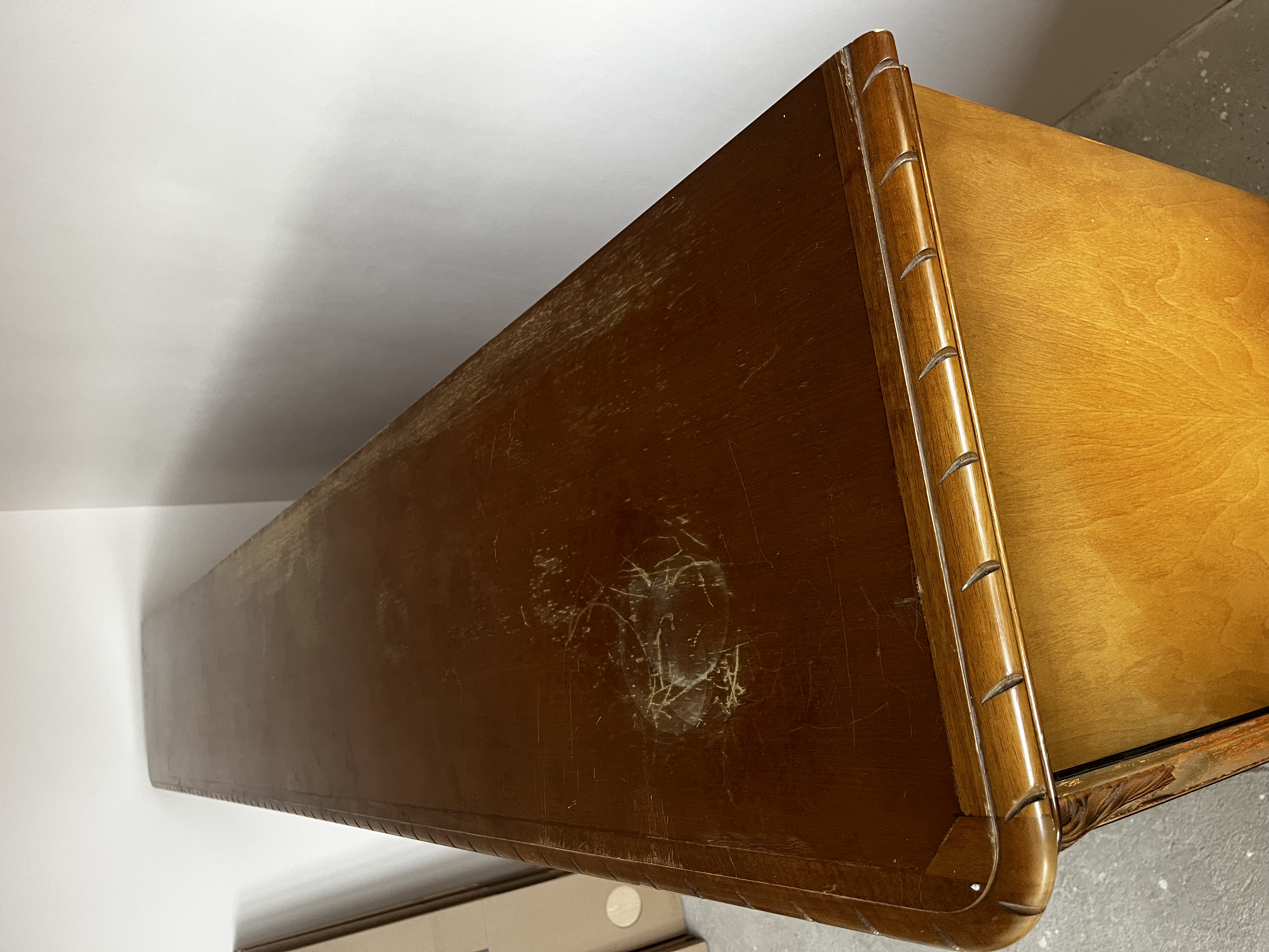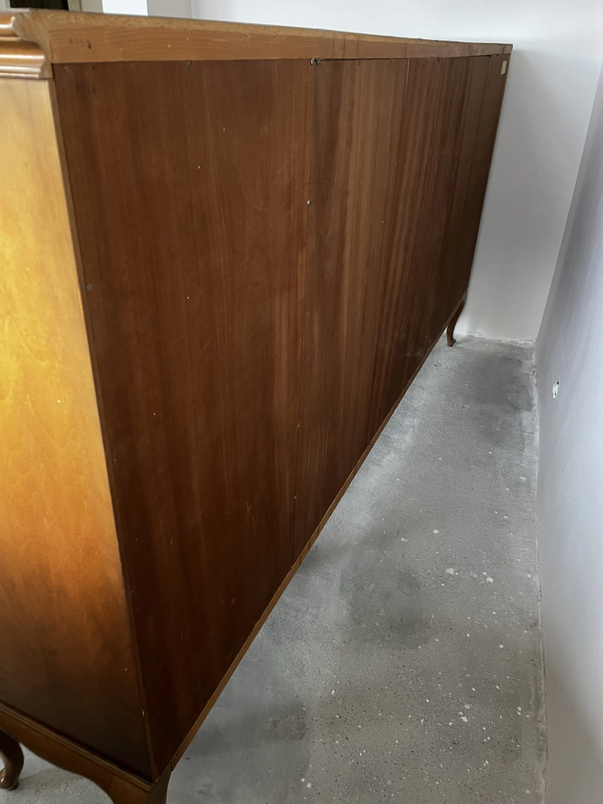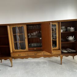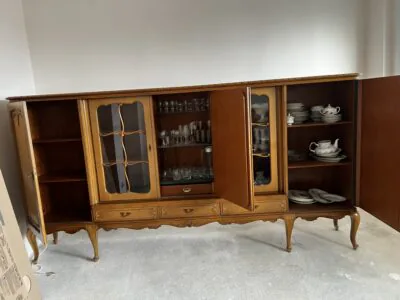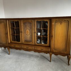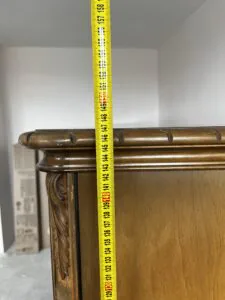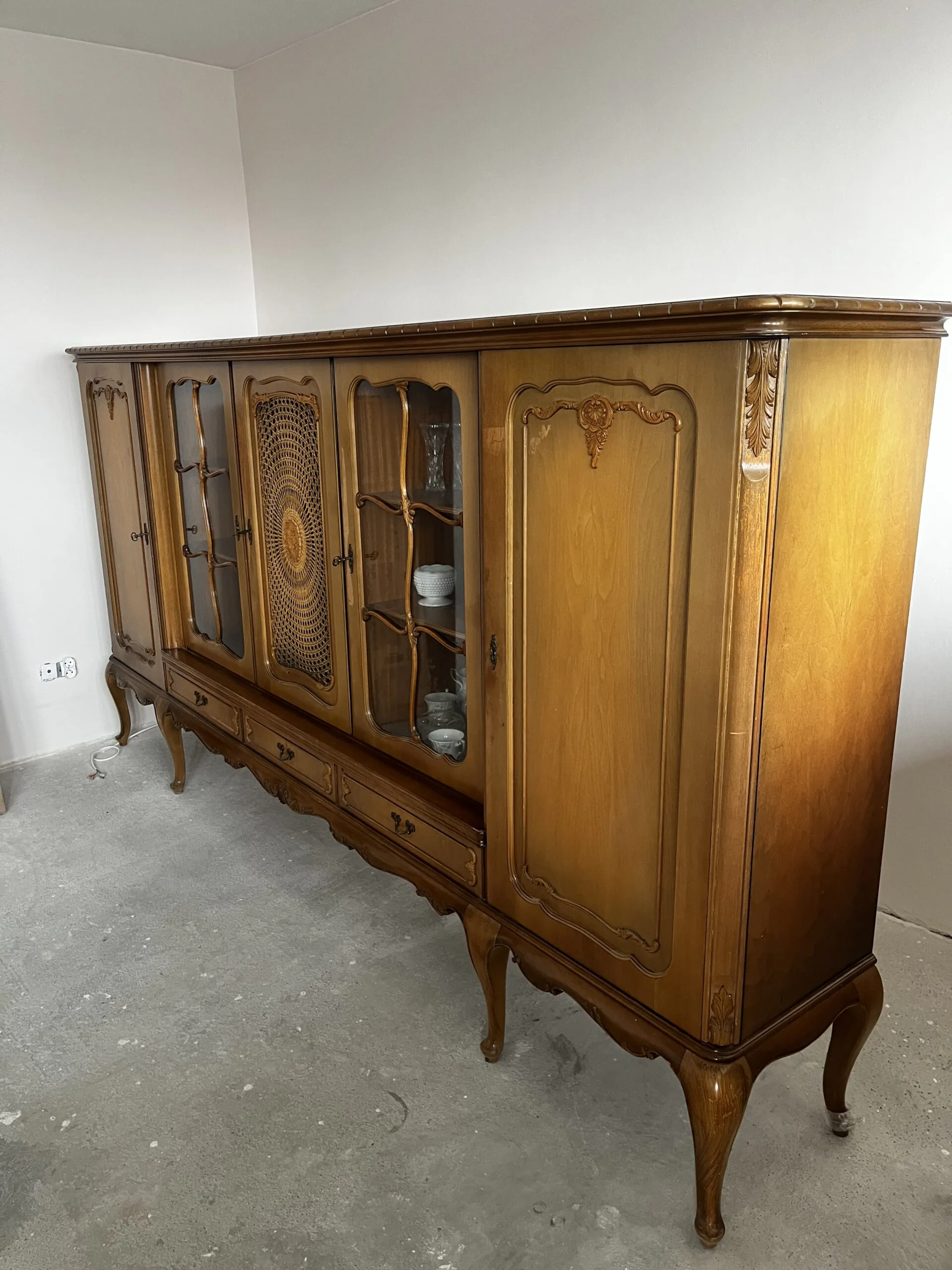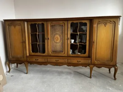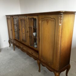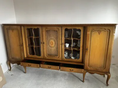 Na sprzedaż poniemiecka antyczna witryna po renowacji. Stan dobry. Wykonana z litego drewna. Wymiar 287cm x 45cm x 147cm (dł. x szer. x wys.). Ta witryna to nie tylko mebel – to portal do czasów, w których rzemiosło było formą sztuki, a każdy detal miał znaczenie. Wykonana ze szlachetnego drewna, które przez dekady nabierało głębi i charakteru, nosi na sobie subtelną patynę czasu niczym najpiękniejszą biżuterię. Za jej krystalicznym szkłem, niczym w bezpiecznym kokonie, Twoja ulubiona porcelana, stare wydania książek czy rodzinne pamiątki zyskują nową oprawę. To mebel z duszą, który milcząco opowiada historie o dawnych salonach, blasku świec i rozmowach toczonych przy filiżance herbaty.
