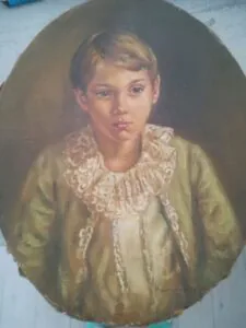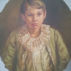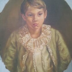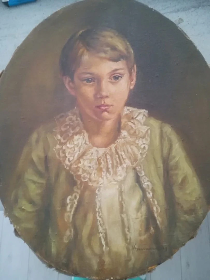 Obraz został namalowany przez artystę malarza Krzysztofa Annusewicza w 1983 roku.Przedstawia on portret chłopca ubranego w jasną koszulę z bogato marszczonym kołnierzem oraz zielonkawą marynarkę. Starannie oddane fałdy materiału i faktura koronki świadczą o dbałości malarza o detal.Kolorystyka obrazu jest stonowana – dominują ciepłe brązy, zielenie i beże, co nadaje całości harmonijny, nostalgiczny charakter. Kompozycja jest spokojna i wyważona, skupiona przede wszystkim na psychologicznym ujęciu młodego modela. . Portret technika olej. Portret olejny to klasyczna technika malarska wykorzystująca pigmenty połączone olejem (np. lnianym) na zagruntowanym płótnie lub desce, cechująca się głębią kolorów, realizmem i trwałością. Proces obejmuje szkic, podmalówkę, nakładanie warstw (technika fat over lean) oraz detalowanie. Pozwala na korekty i tworzenie bogatej tekstury. OFERTA sprzedaży jak w załączeniu. Dokłądne zdjęcia dosyłąm na email.
