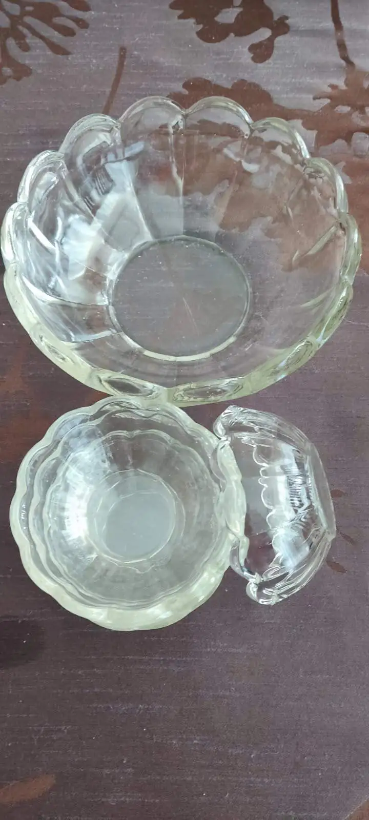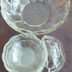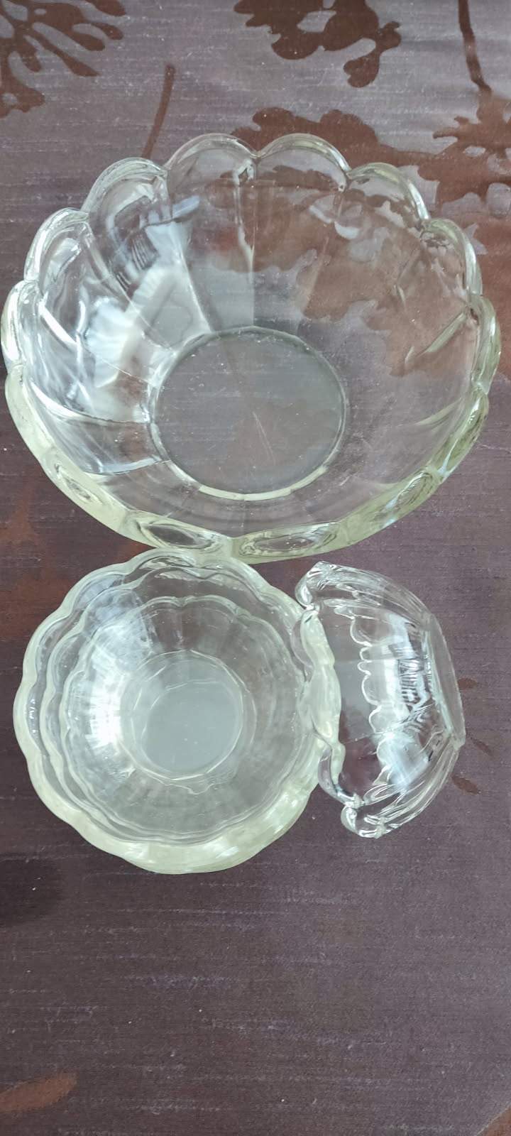 Kompotierki:duża miska o średnicy 22 cm wys. 7 cm szt. 1+ 3 szt.małych miseczek o średnicy 11,5 cm .