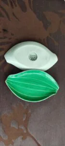 Popielniczki zielone szt.2 o wymiarach 15na8,5 cm.