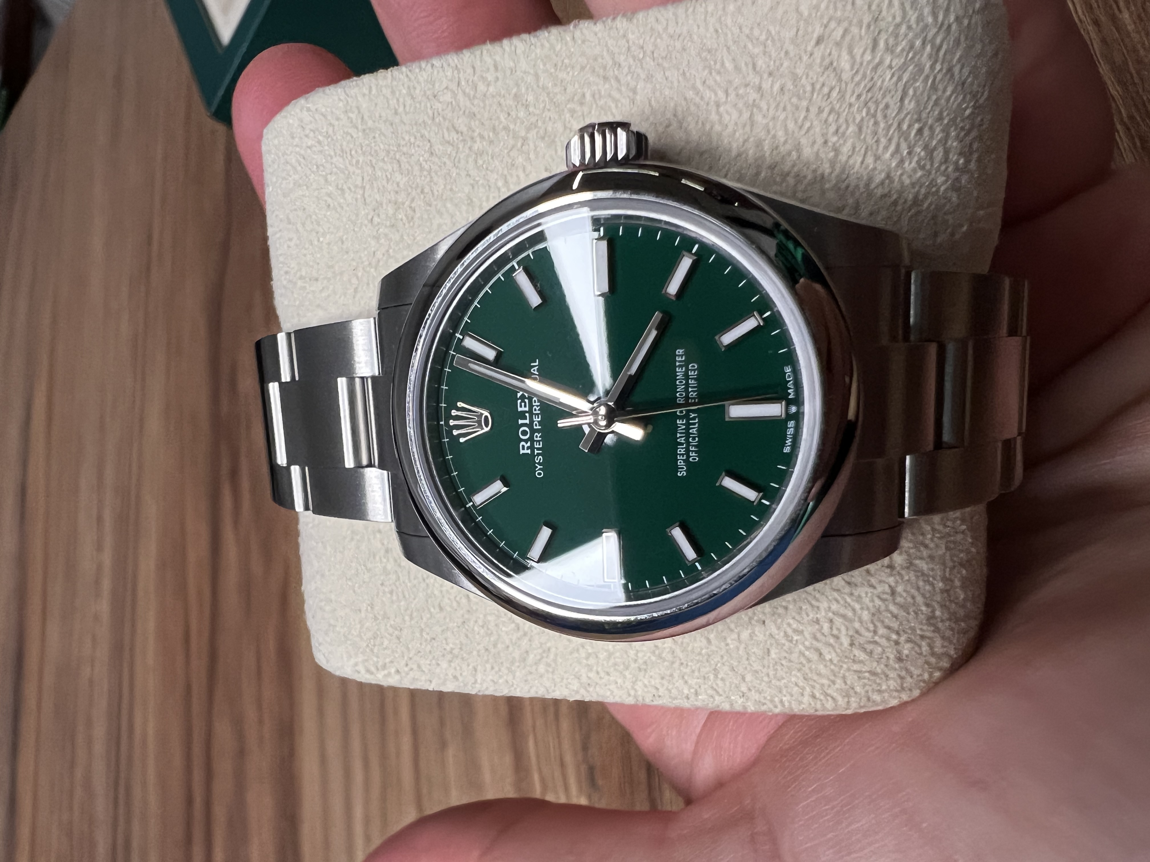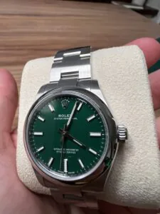 Rolex Oyster Perpetual 31 mm Ref. 277200 z zieloną tarczą, pełnym zestawem i w idealnym stanie (kupiony w polskim salonie w 2024 W.Kruk). Rolex Oyster Perpetual 31 mm to klasyczny,...