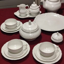 Do sprzedanie nieużywany zestaw obiadowy porcelanowy firmy Wałbrzych. Nieużywany. Otrzymany jako prezent w 1985 r.Serwis obiadowy na 12 osób.12 małych talerzy deserowych, 12 płaskich, 12 głębokich, waza do zupy, sosjerka,...