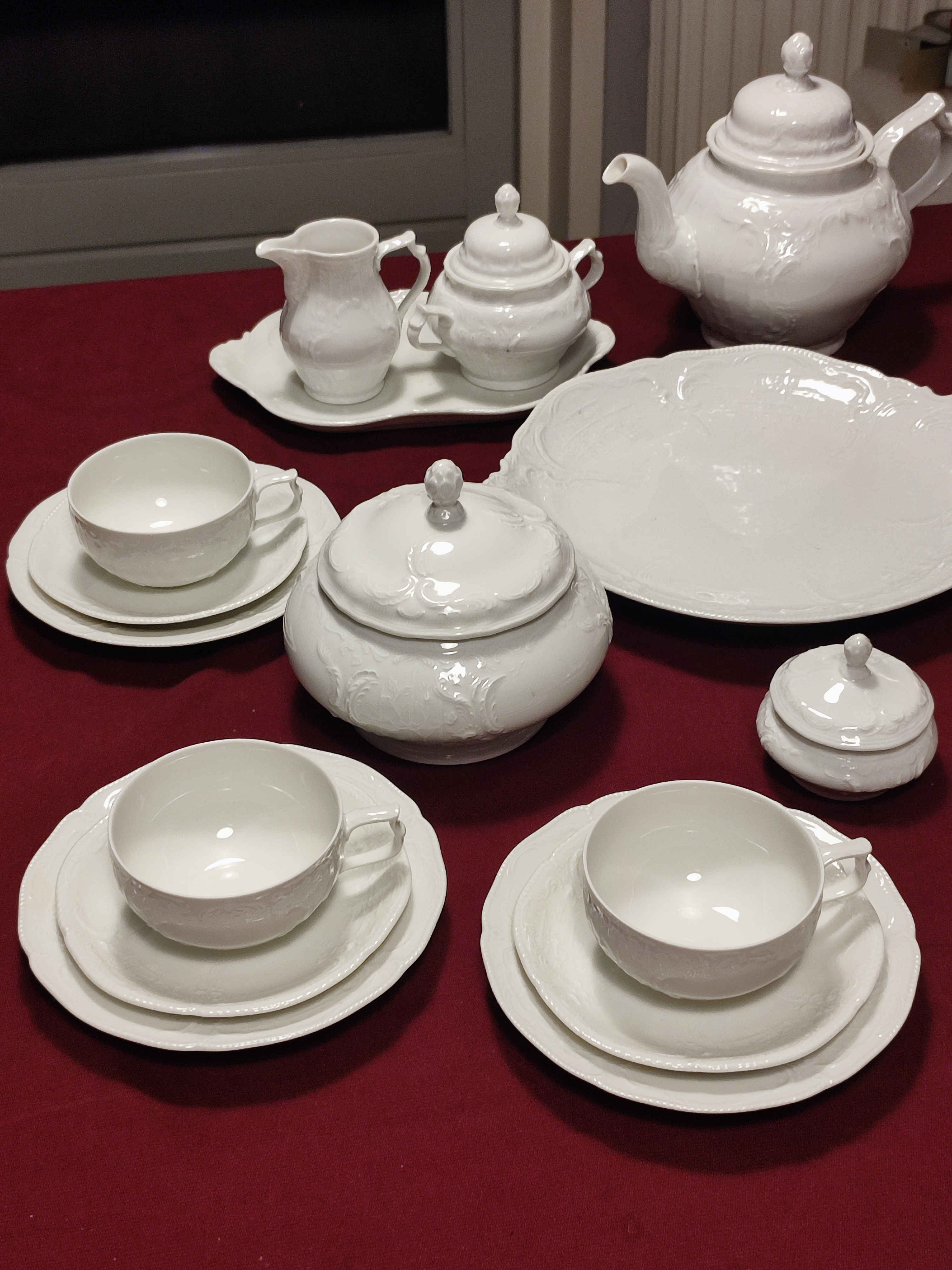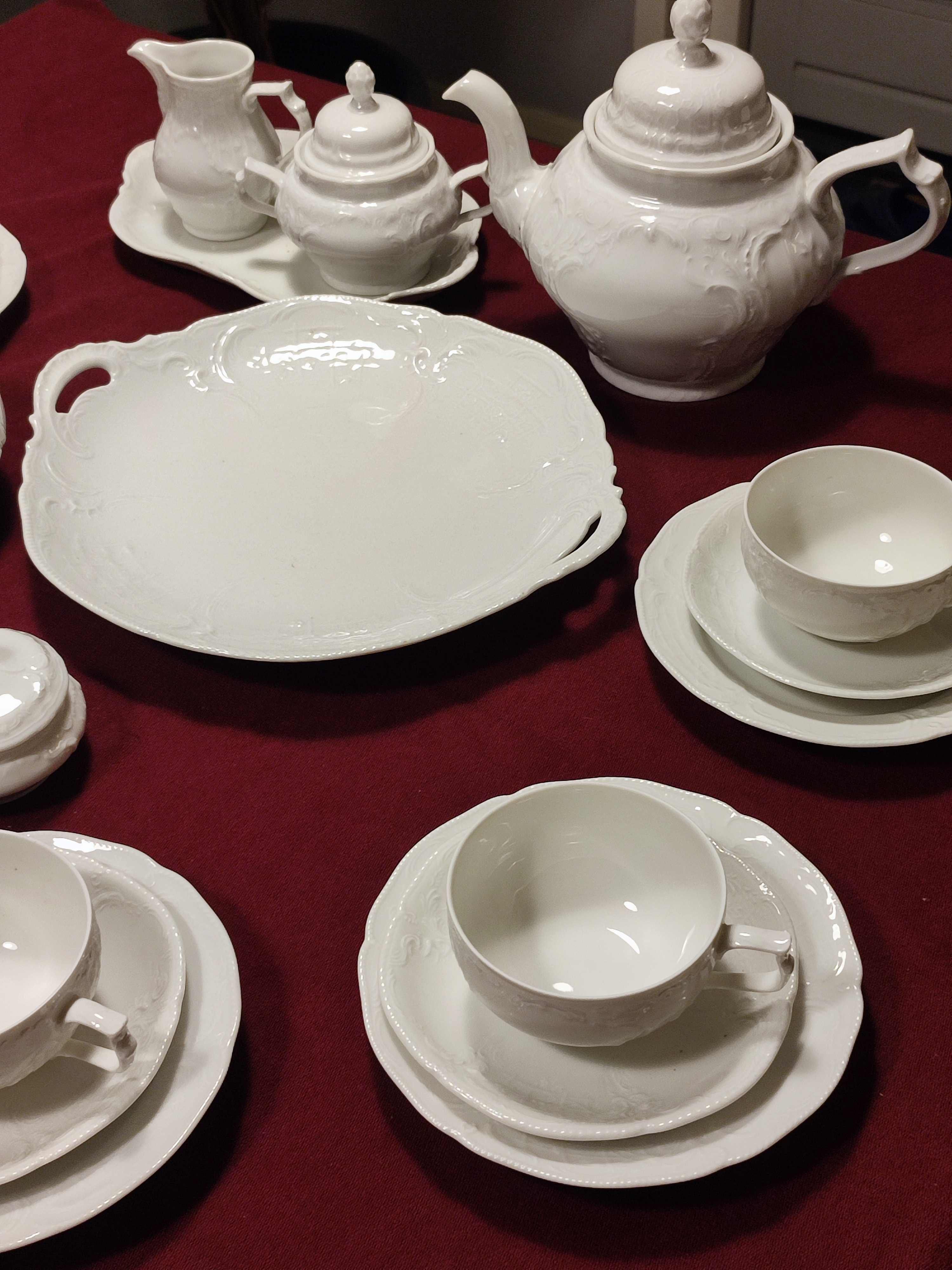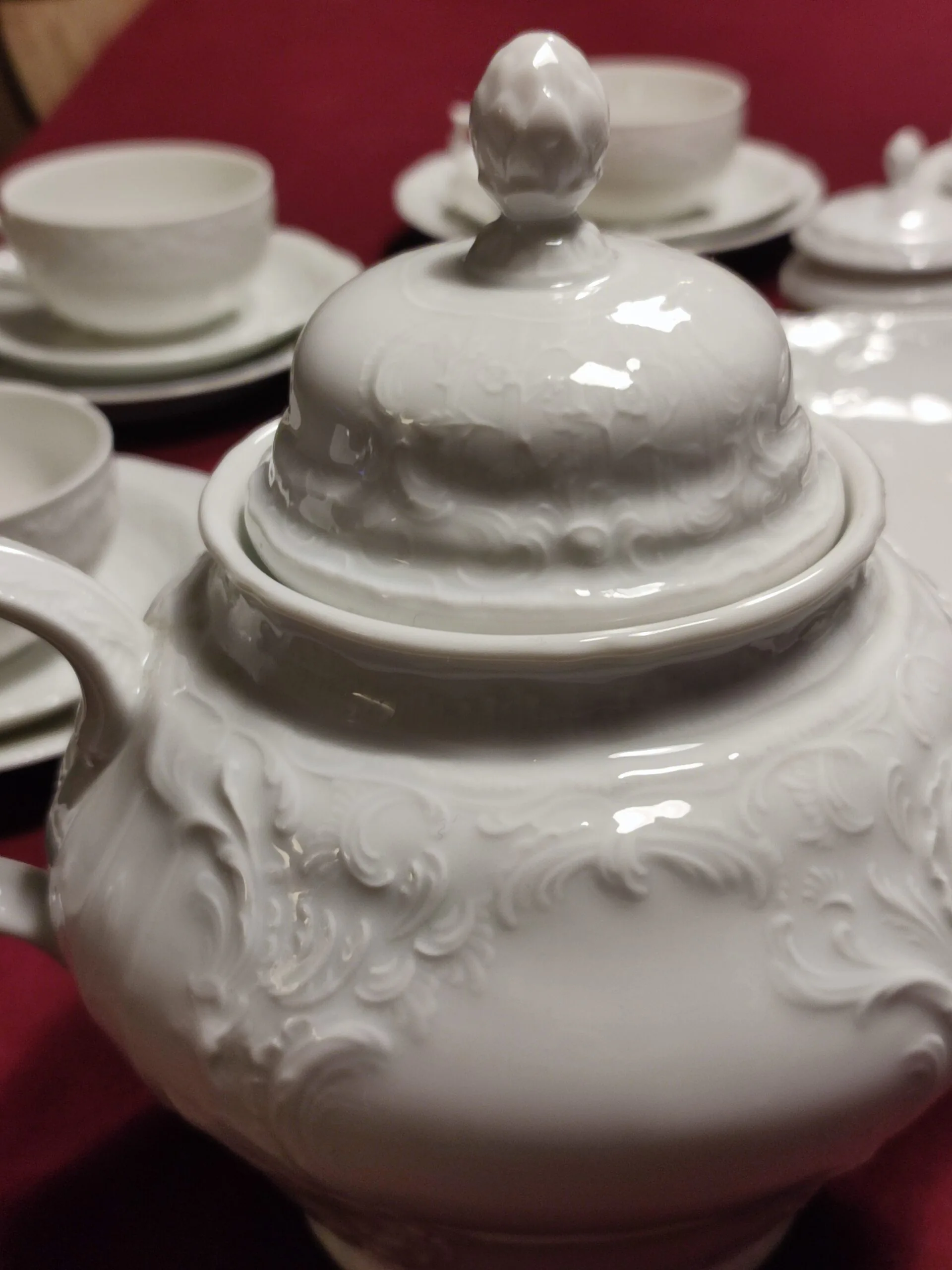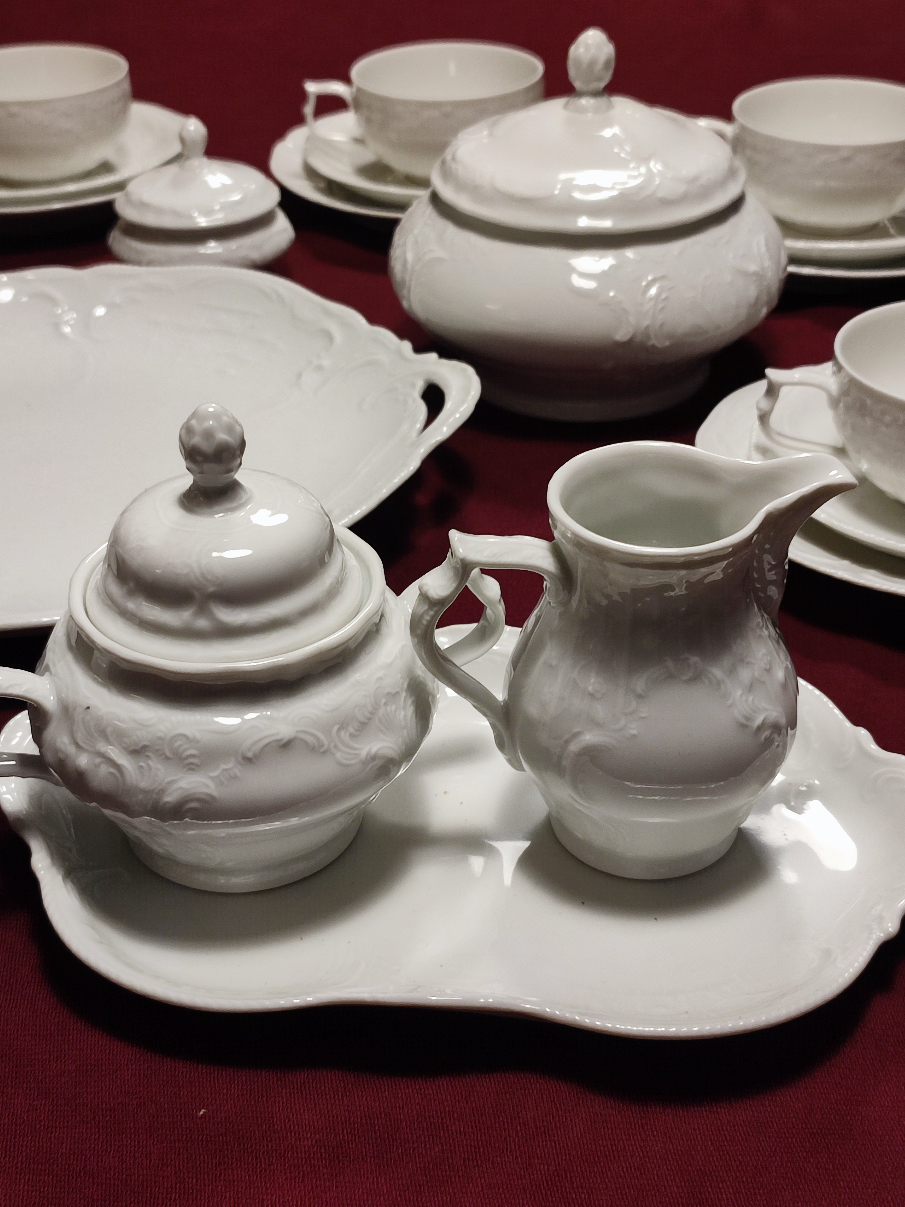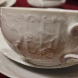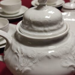 Rosenthal Sanssouci to jedna z najbardziej ikonicznych i luksusowych kolekcji porcelany marki Rosenthal, inspirowana rokokowymi wnętrzami pałacu Sanssouci w Poczdamie. Zaprojektowana pierwotnie w 1894 roku przez Karla Bayreuthera, od dziesięcioleci stanowi symbol elegancji i prestiżu na światowych stołach.. Serwis do herbaty 6 osób Rosenthal Sanssouci w kolorze białym. Serwis w bardzo dobrym stanie, bez ubytków i przetarc. Rosenthal SANSSOUCI komplet 6 herbata