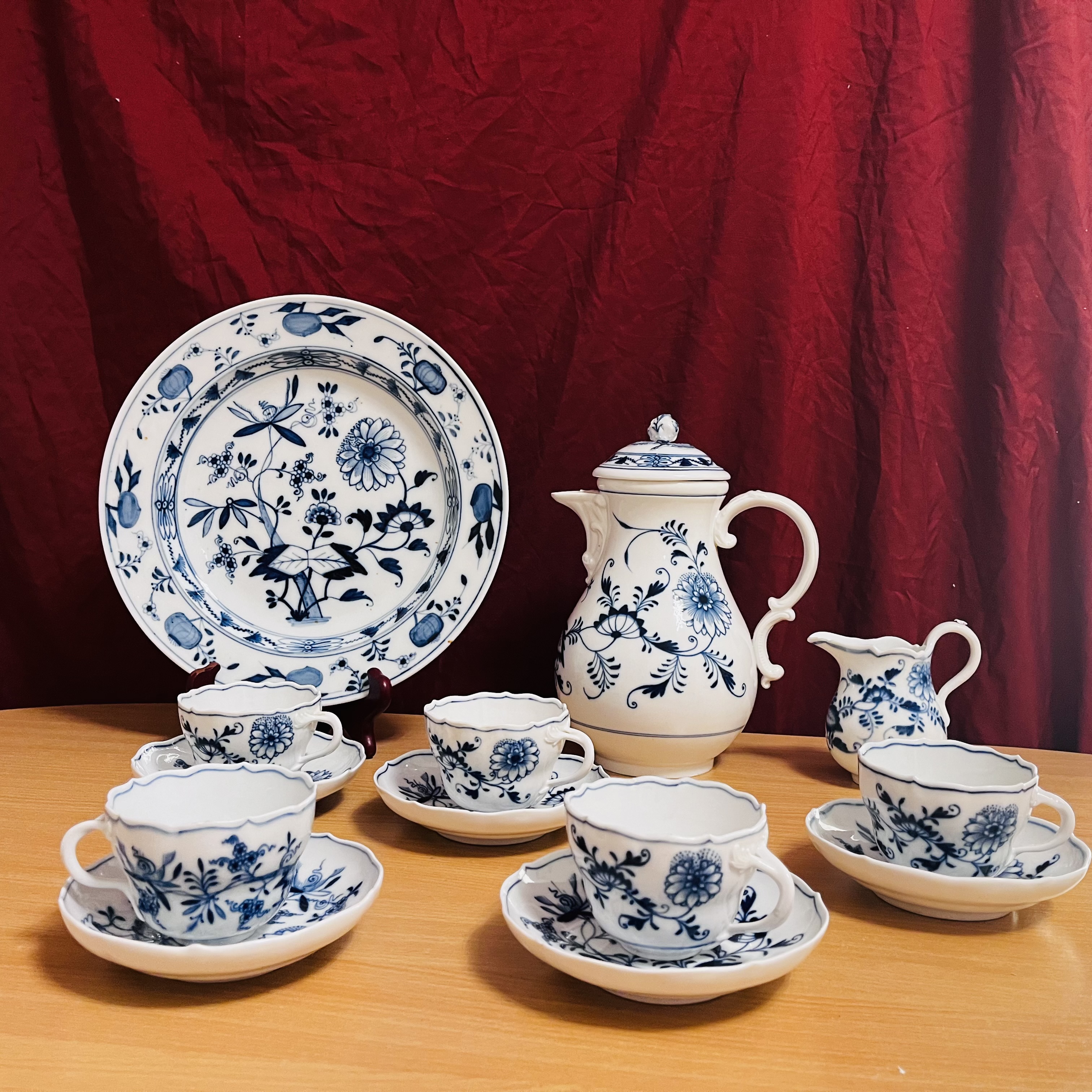 Zestaw kawowy 5-osobowy Miśnia, lata 1850-1934. (13sz.) «Zwiebelmuster». czas produkcji połowa XVIII wieku początek XX wieku.