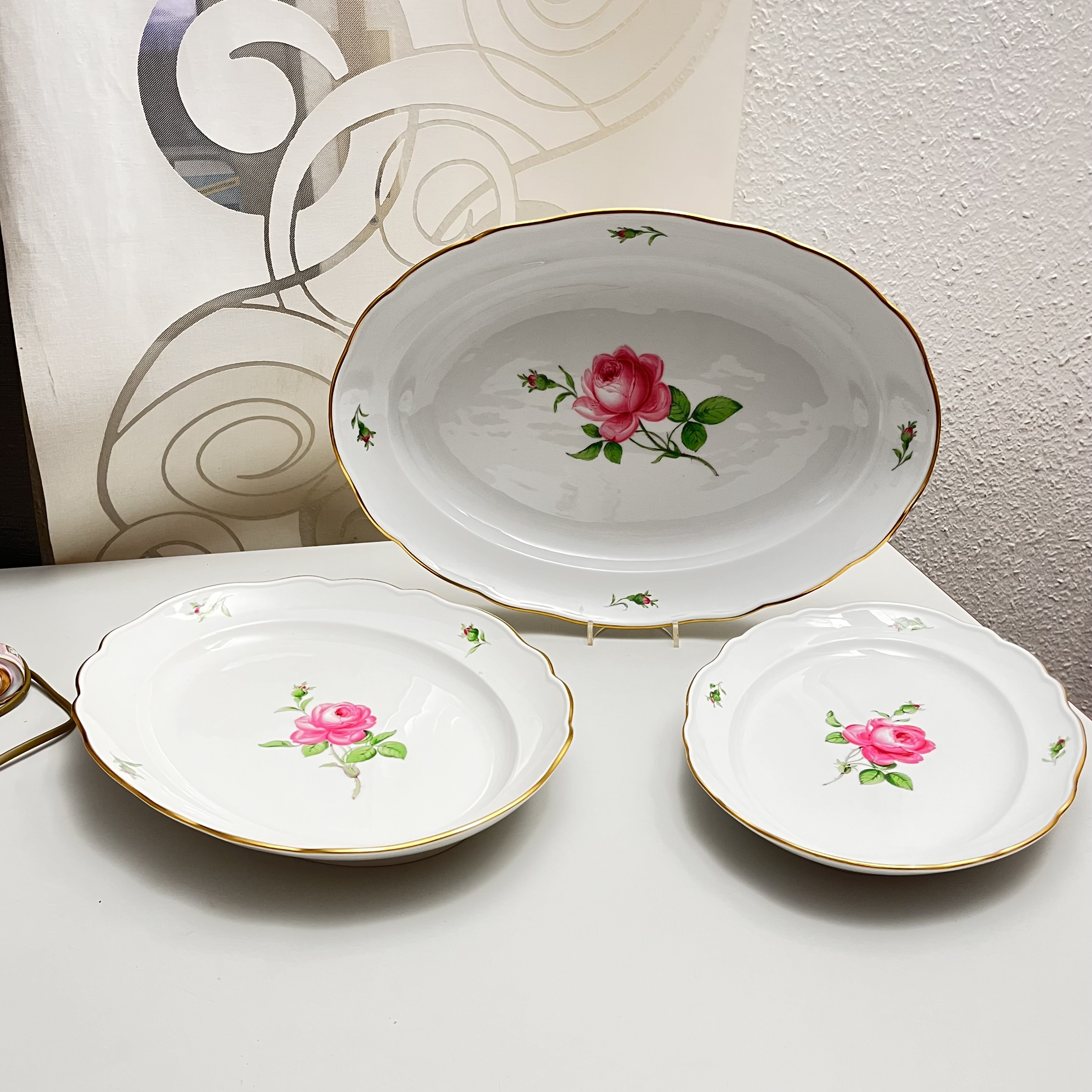 Mieissen. „Rote rose” 3 duże talerze