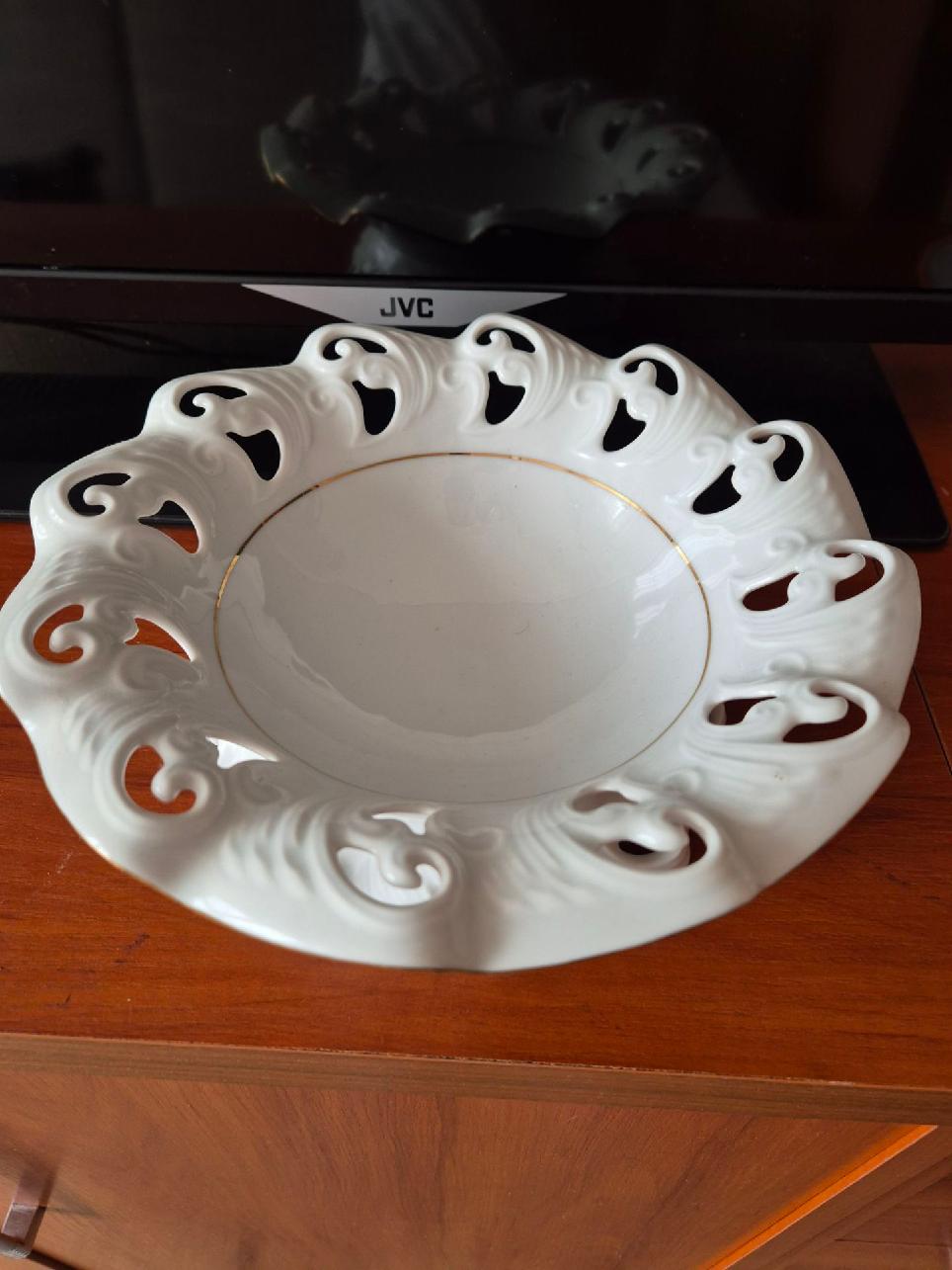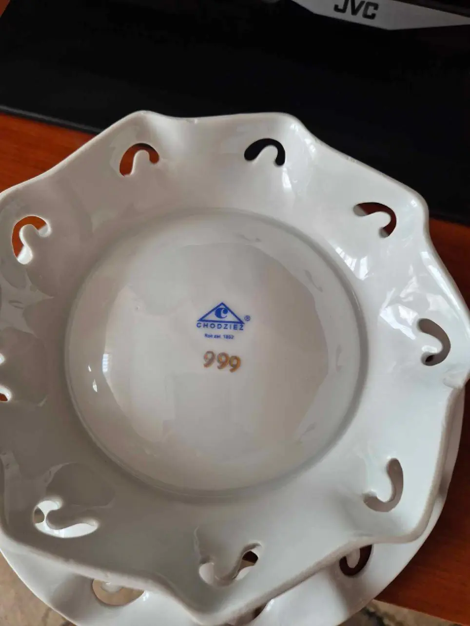 Przedmiotem jest spodek lub tacka z porcelany misnienskiej (Meissen), charakteryzujacy sie sygnatura w postaci dwoch...