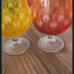 Talerze oraz kieliszki lat 60 i 70 . Szkło z lat 60 i 70. Szkło z lat 60. i 70. to złota era polskiego wzornictwa, charakteryzująca się odejściem od tradycyjnych kryształów na rzecz nowoczesnych form, intensywnych kolorów i innowacyjnych technik produkcyjnych.