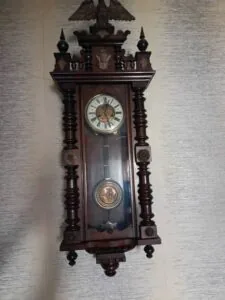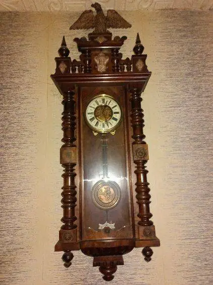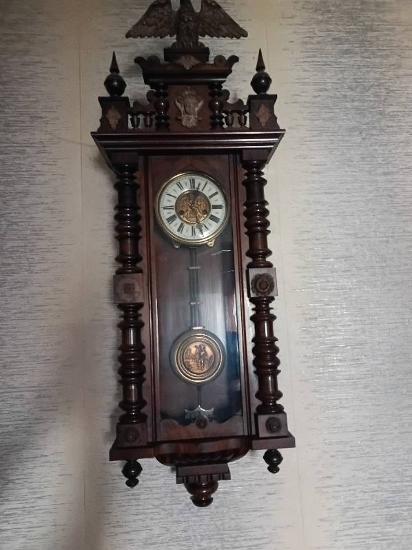 ZEGAR ścienny. Drewniany zegar szafkowy z wahadłem, który wybija pełne godziny i połówki.Wiele starszych modeli posiada tzw. mechanizm paryski, gdzie bicie musi być zsynchronizowane ze wskazówkami ręcznie, jeśli zegar się zatrzyma. W zegarach z biciem zaleca się przesuwanie wskazówek do przodu i pozwalanie zegarowi „wybić” każdą mijaną godzinę, aby nie rozsynchronizować mechanizmu. Historyczne zegary ścienne to przede wszystkim mechaniczne zegary wahadłowe, które od XVII wieku stanowiły centralny punkt europejskich domów. W Polsce i Europie Środkowej najbardziej cenione są modele niemieckie, holenderskie oraz rodzime wyroby z okresu międzywojennego. OFERTA sprzedaży jak na zdjęciach. ZEGAR Drewniany szafkowy z wahadłem