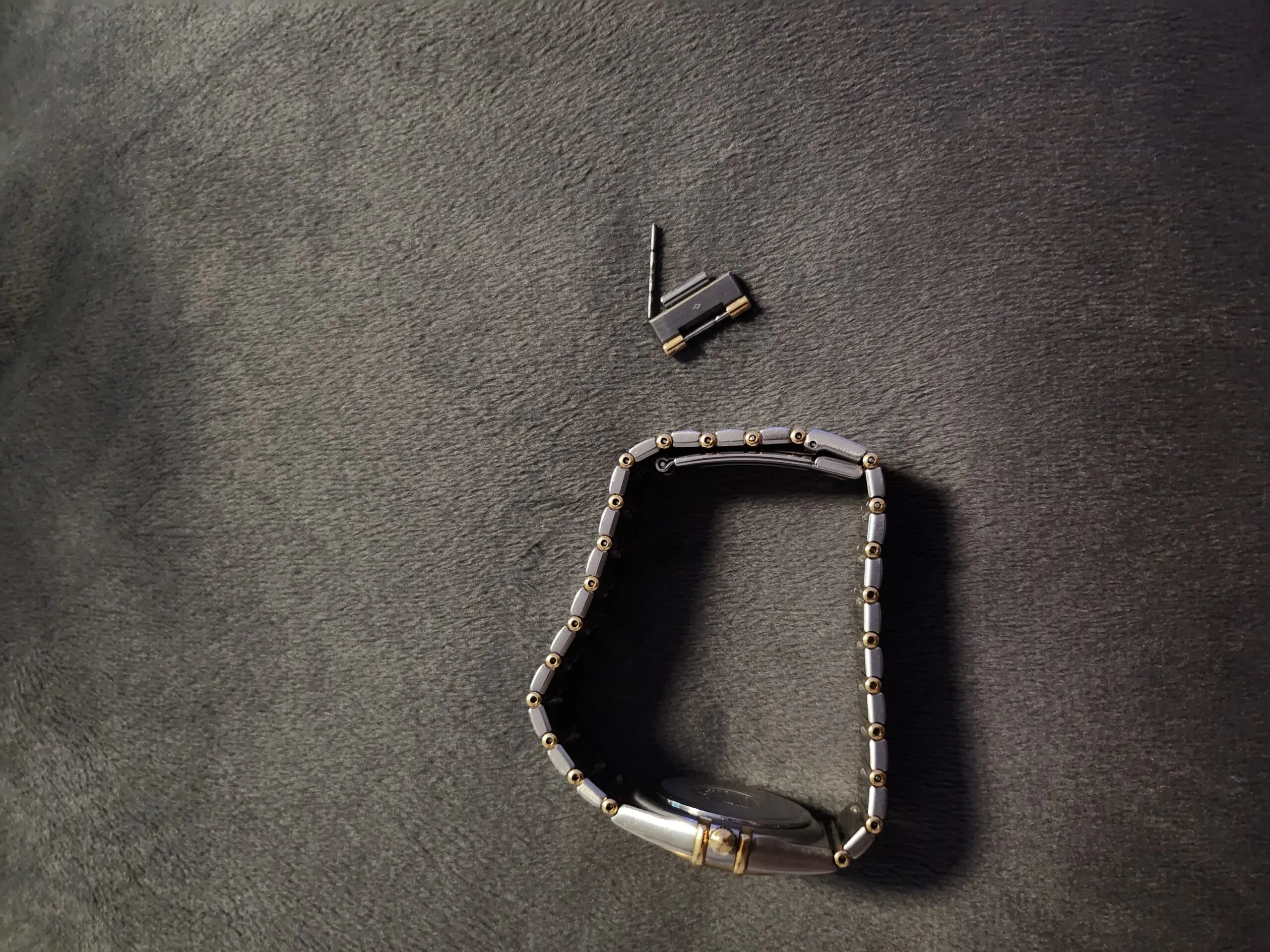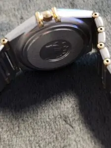 Zegarek jest w stanie dobrym, bransoleta nosi ślady użytkowania, jest lekko porysowana. Bateria w zegarku została niedawno wymieniona i zegarek jest w pełni sprawny. Zegarmistrz potwierdził jego autentyczność. Mam do niego jeszcze jeden „zamek” do powiększenia bransolety.