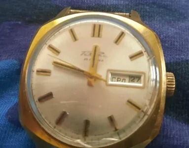 Witam mam do zaoferowania na sprzedaż zegarek rosyjski: rakieta. Zegarek posiada aż 29 kamieni i jest automatyczny, sprawny. Nieustawiony tylko datownik, koperta żółta.