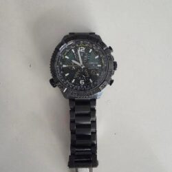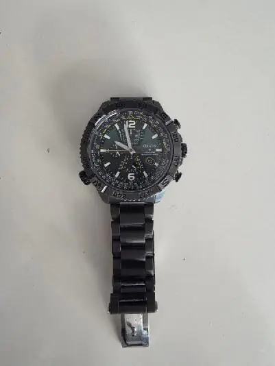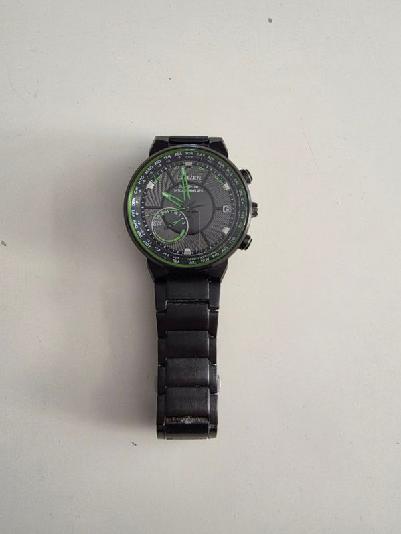 Citizen Promaster Navihawk A-T o numerze modelu AT8227-56X. Jest to zaawansowany model z serii pilotarskiej, charakteryzujący się zieloną tarczą oraz stalową kopertą i bransoletą w kolorze szarym (często określanym jako „storm grey”). Kluczowe cechy i funkcje: Mechanizm Eco-Drive: Zasilany dowolnym źródłem światła, co eliminuje konieczność wymiany baterii. Radio Controlled: Automatyczna synchronizacja czasu z zegarem atomowym za pomocą fal radiowych, co zapewnia idealną precyzję. Materiały: Koperta o średnicy 48 mm wykonana ze stali szlachetnej (często z powłoką PVD) oraz odporne na zarysowania szkło szafirowe. Funkcjonalność: Chronograf (stoper), wieczny kalendarz, czas światowy (GMT), suwak logarytmiczny oraz kompas. Wodoszczelność: Klasa WR200 (20 ATM / 200 m), co pozwala na pływanie i nurkowanie bez akwalungu