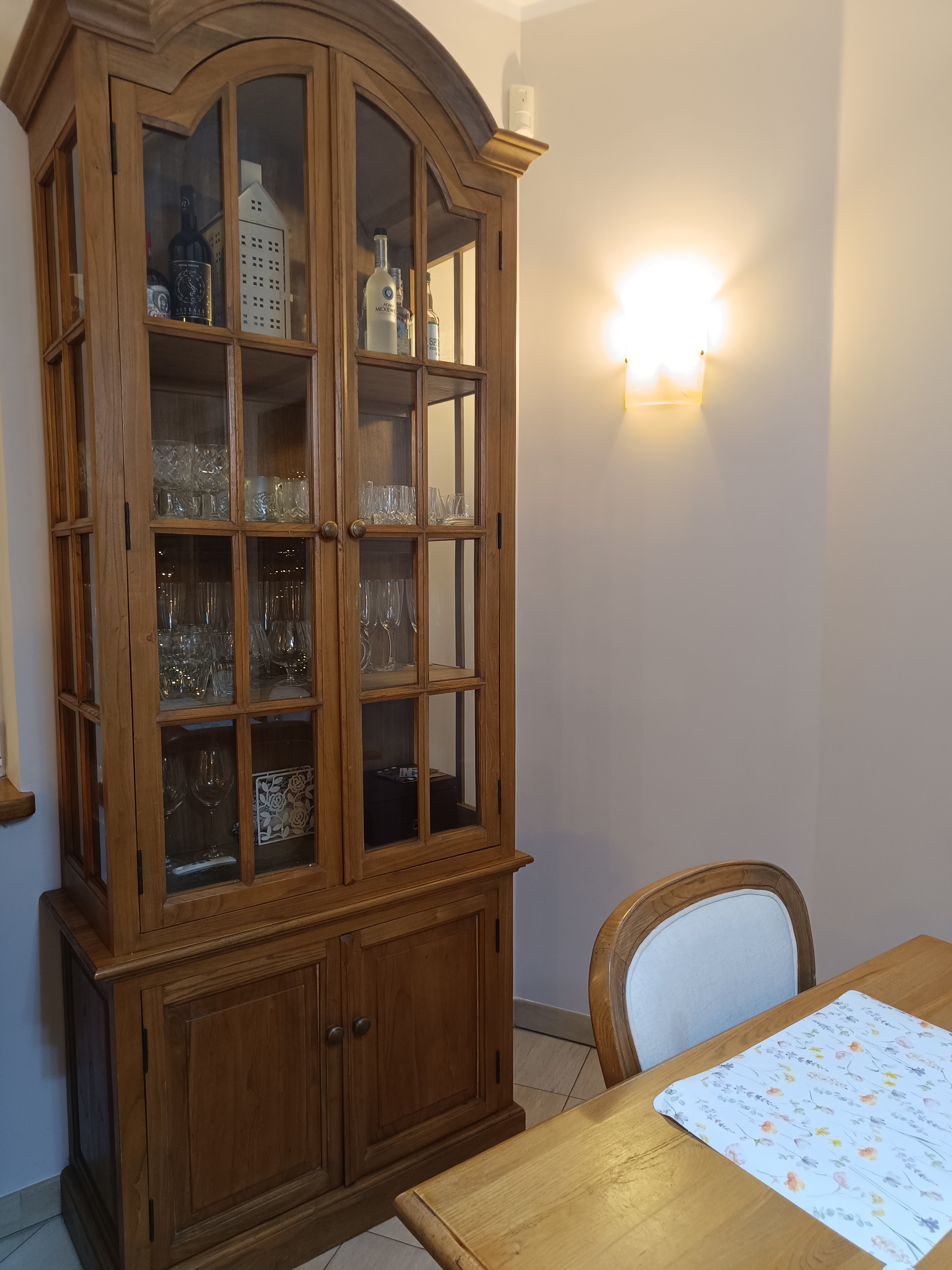 Kolekcja mebli: szafa trzydrzwiowa z lustrem , łóżko podwójne, 2x szafki nocne przy łóżku , kinkiety i lusterka do sypialni, Witryna , stół i 6 krzeseł, komoda, duży kredens i...