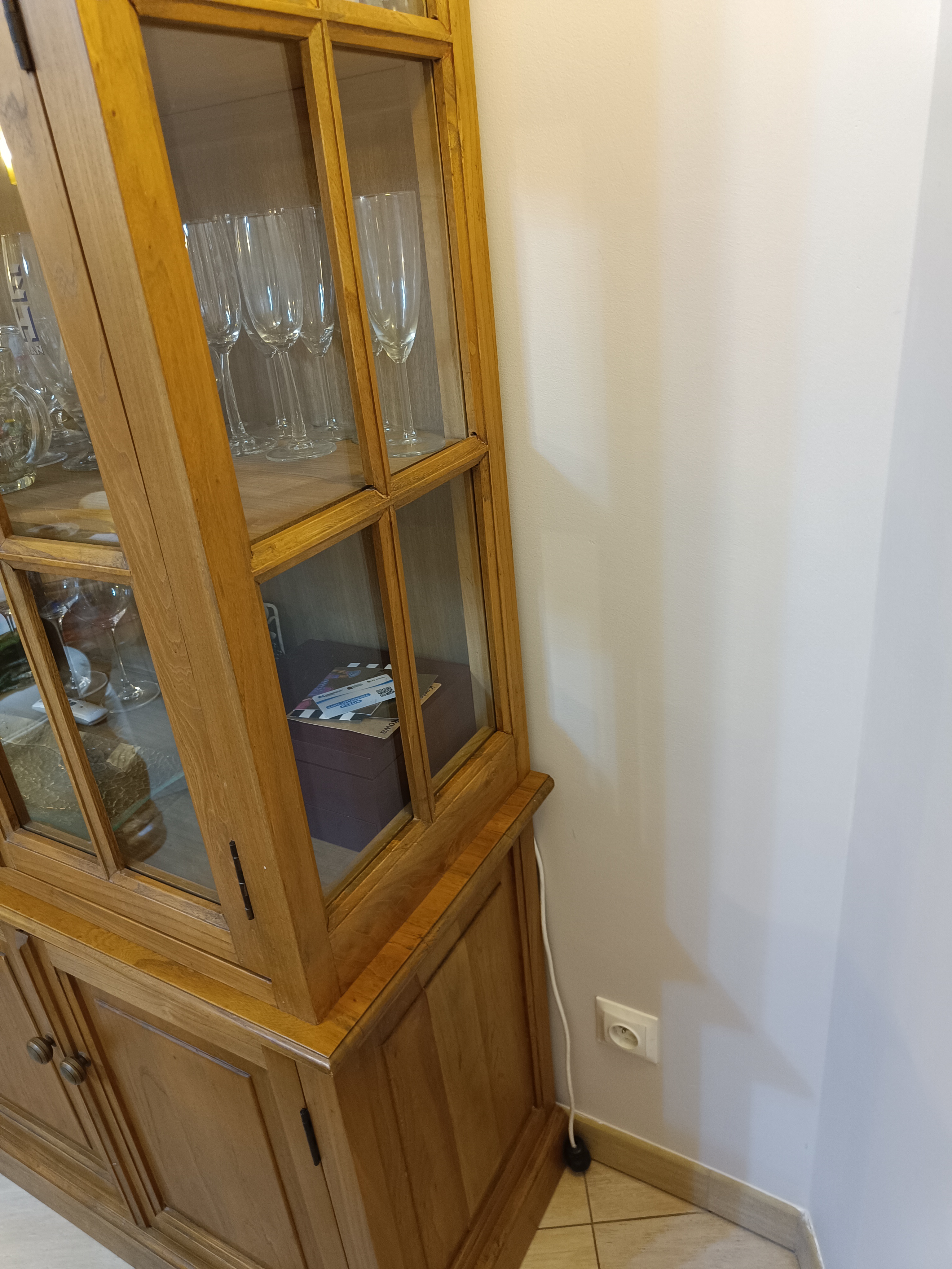 Widoczne na zdjęciu meble to kredensy i witryna w stylu Art Deco, datowane prawdopodobnie na lata 40 lub 50. XX wieku, wykonane z forniru orzechowego. Ten styl charakteryzuje się opływowymi kształtami i...