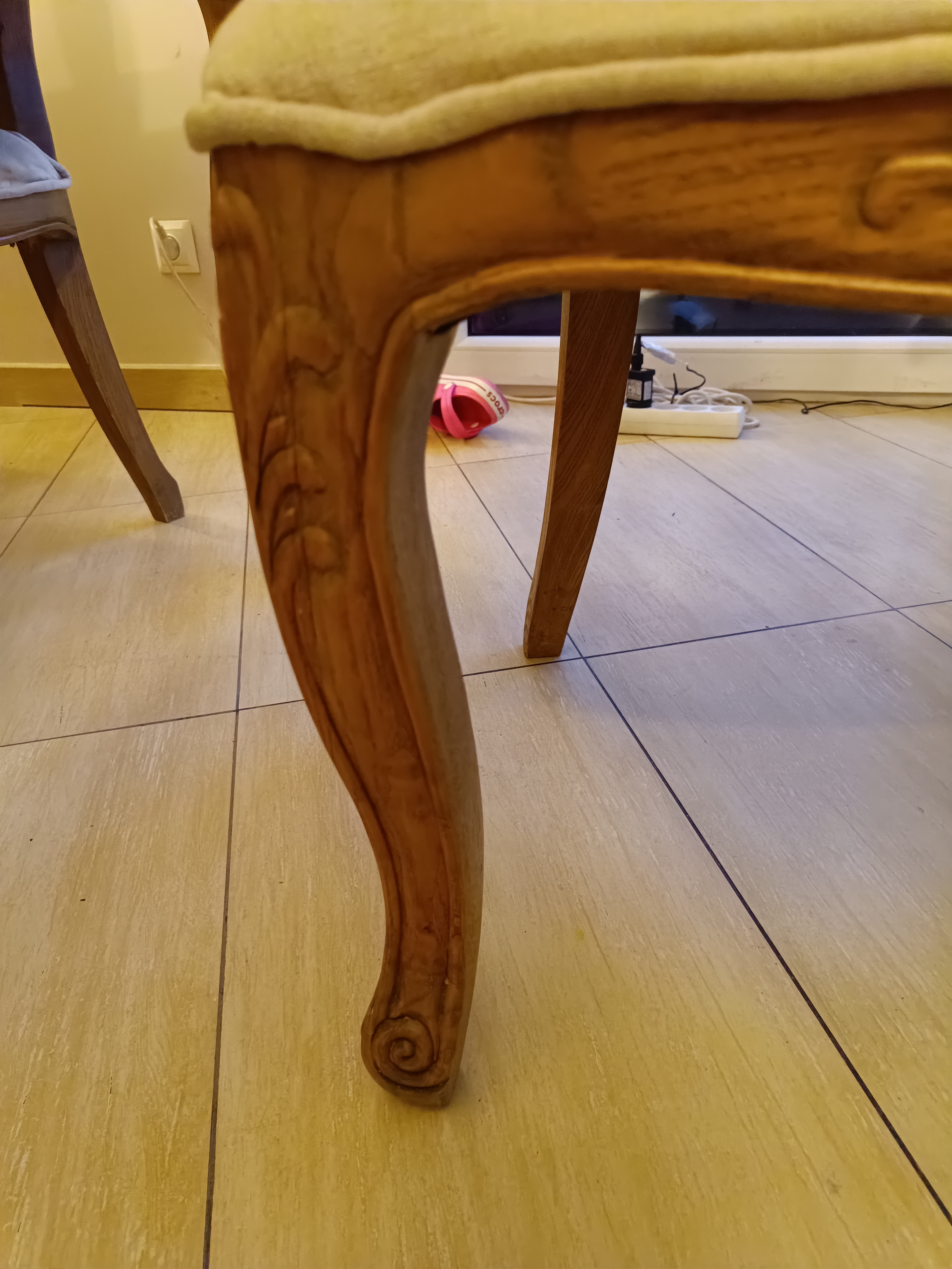 Zestaw mebli stylowych z litego drewna egzotycznego, w tym rozkładany stół 180-220 cm / 100 cm/ 80 cm, komplet 8 stylowych, rzeźbionych krzeseł ( jedynie tapicerka wymaga wymiany lub prania), stylowa komoda 80 cm/40 cm/78 cm, witryna 88 cm/40 cm/220 cm oraz stolik ze szklanym blatem 63 cm/ 86 cm /54 cm. Wszystkie meble w bardzo dobrym stanie poza krzesłami których tapicerka wymaga wymiany oraz małymi przebarwieniami stolu w jednym miejscu (niewidoczne po położeniu serwetki). Solidnie wykonane, stylowe, frezowane. Meble kolonialne.