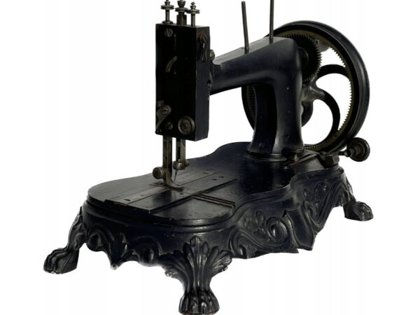 To ręczna maszyna korbowa (napędzana ręcznie kołem zamachowym). Konstrukcja wskazuje na okres ok. 1895–1910 r. Ma klasyczny chwytacz wahadłowy (typowy dla maszyn z przełomu XIX i XX w.). Oryginalna podstawa...