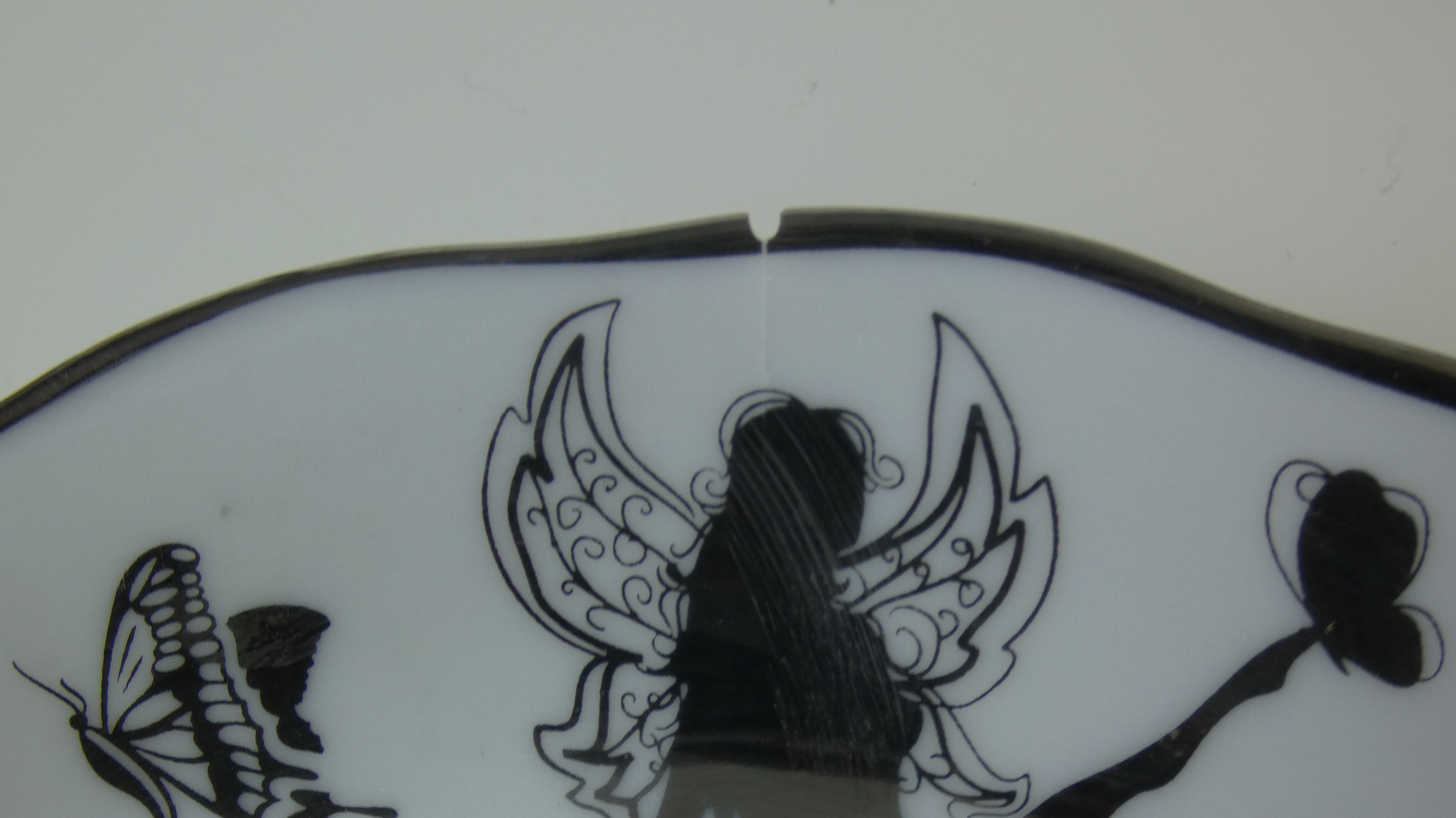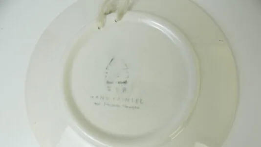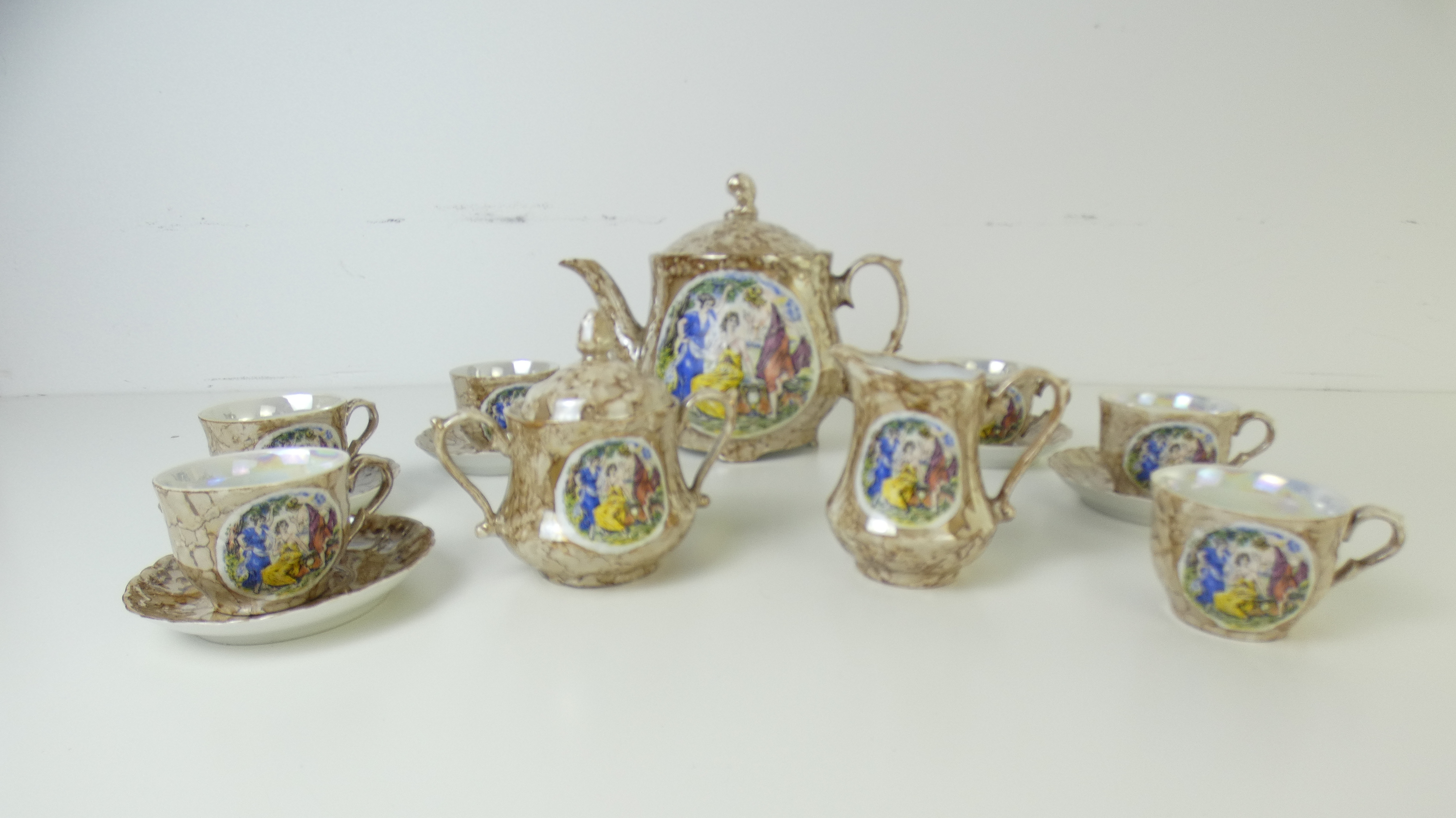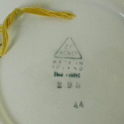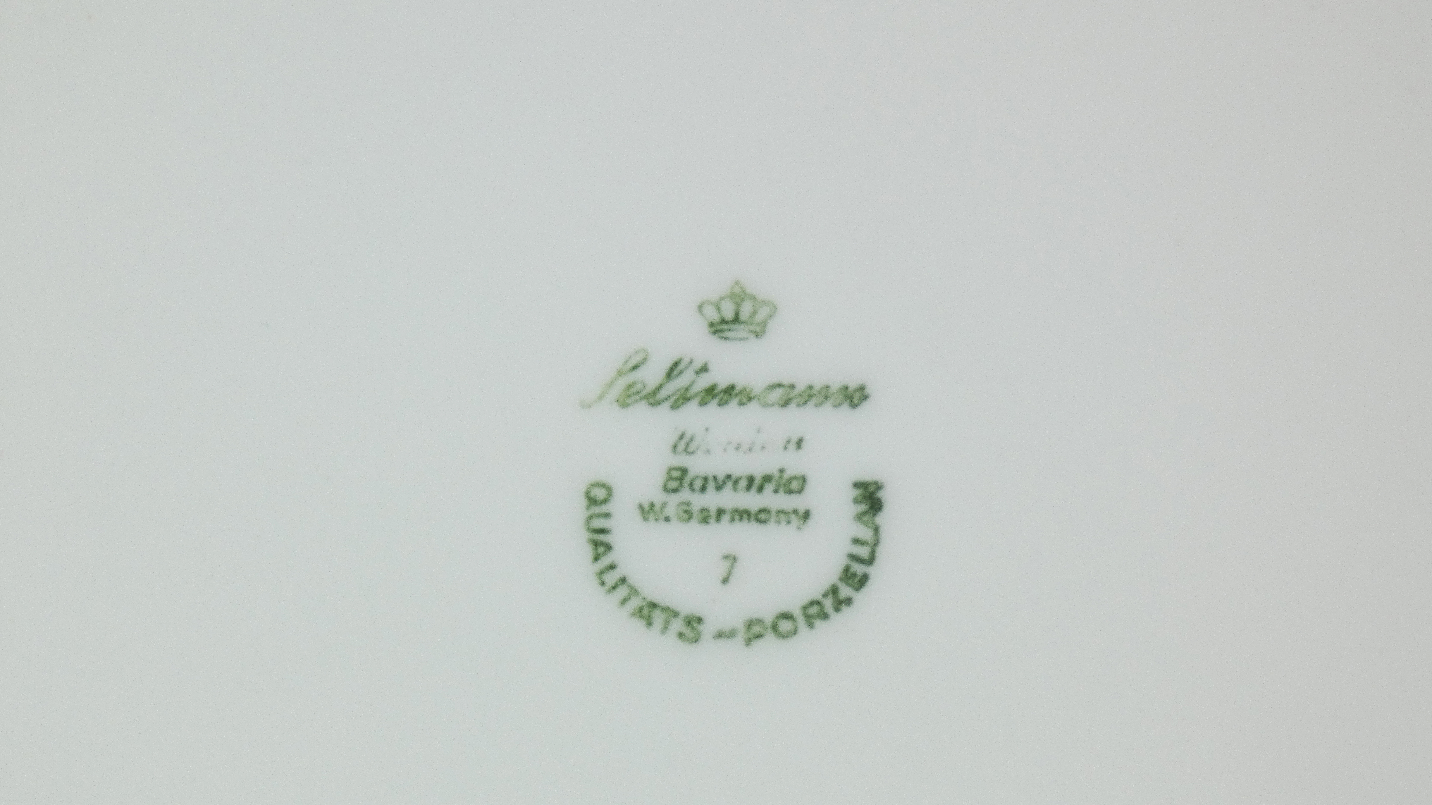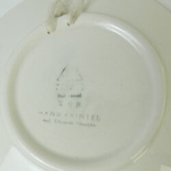 W zestawie brakuje jednego spodka pod filiżankę – reszta kompletu w bardzo dobrym stanie, bez pęknięć i wyszczerbień.