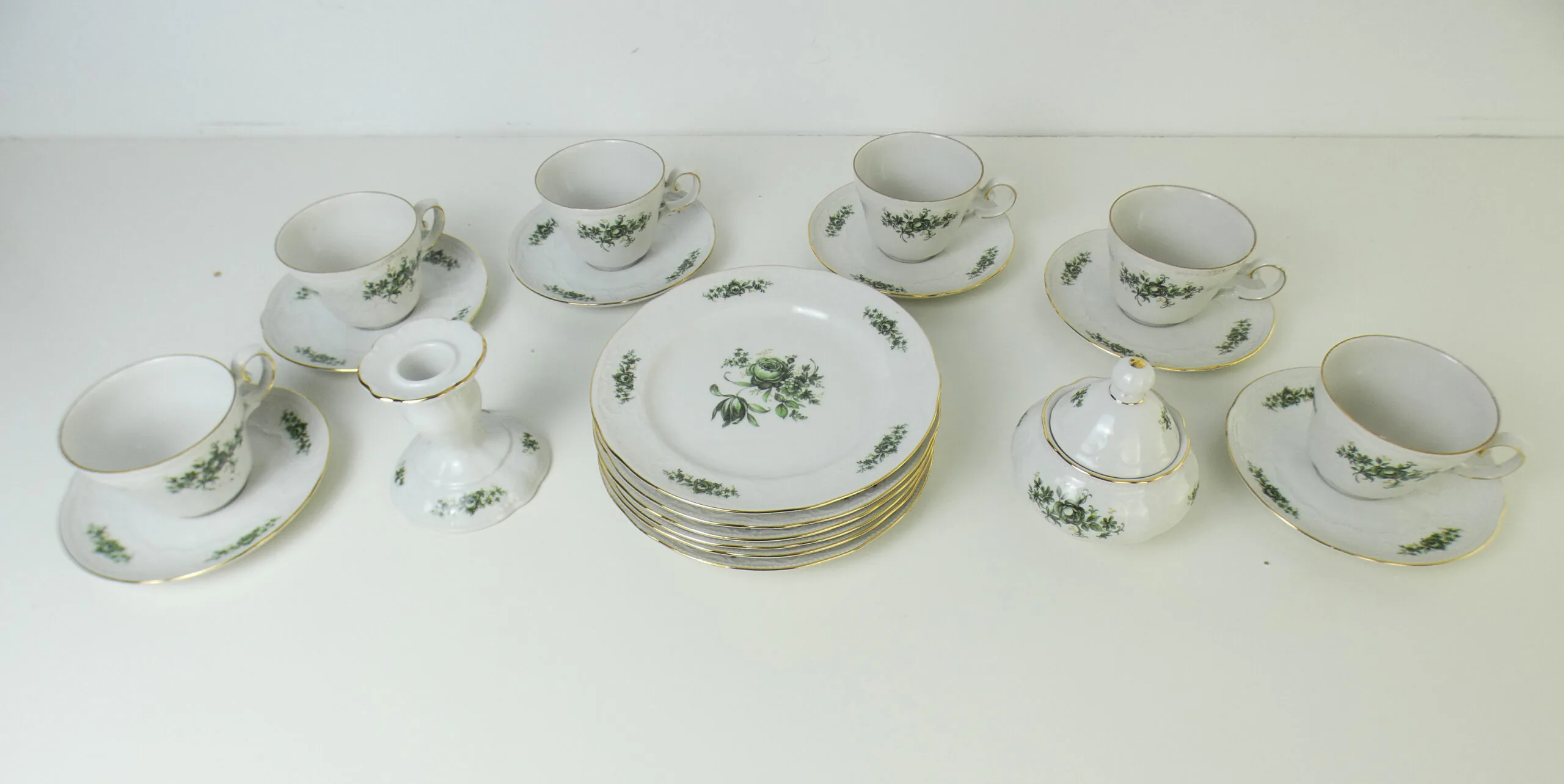 Zestaw porcelany Cromoserigrafica – Włocławek, Poland Na sprzedaż elegancki zestaw porcelany Cromoserigrafica. Stylowa porcelana o dekoracyjnym wzornictwie, idealna zarówno do serwowania kawy, jak i jako element kolekcjonerski.